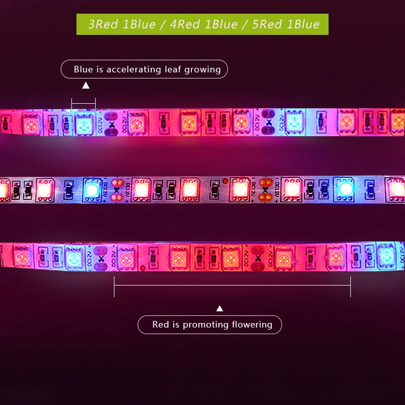 Растительные огни 2 м 3 м 5 м Водонепроницаемая полноспектральная Светодиодная лента цветок фитолампа красный синий 4:1 для теплицы гидропоники