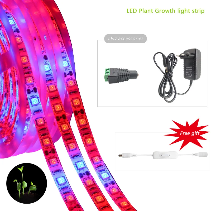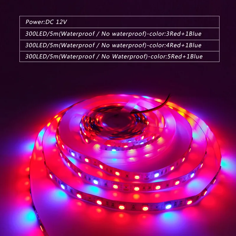Светодиодная лента для выращивания растений, водонепроницаемая фитолампа полного спектра для саженцев, красная, синяя, 4:1, 2 м, 3 м, 5 м