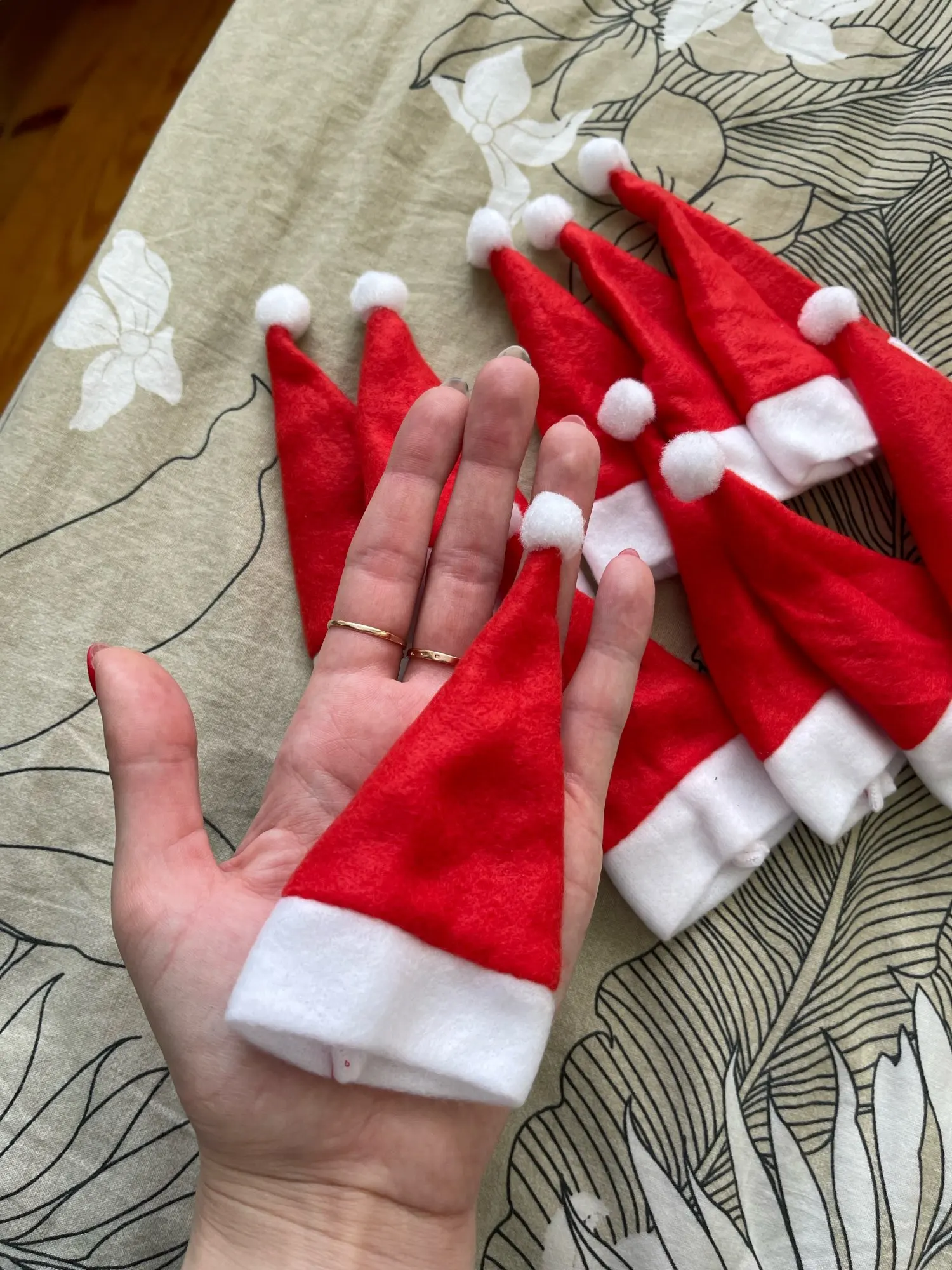 Очень милые колпачки) заказано было как и предложено на фото продавца, для оформления столовых приборов на праздничный стол, но их можно использовать не только для этого. Это отличные шапочки для маленьких игрушек. Рекомендую. Покупкой довольна.