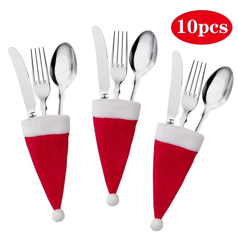 10 шт., рождественские украшения, держатель для кухонной посуды, вилка, нож, столовые приборы дюйма, кармашек, Рождественское украшение мешки для ложек дюйма, декор для обеденного стола дюйма