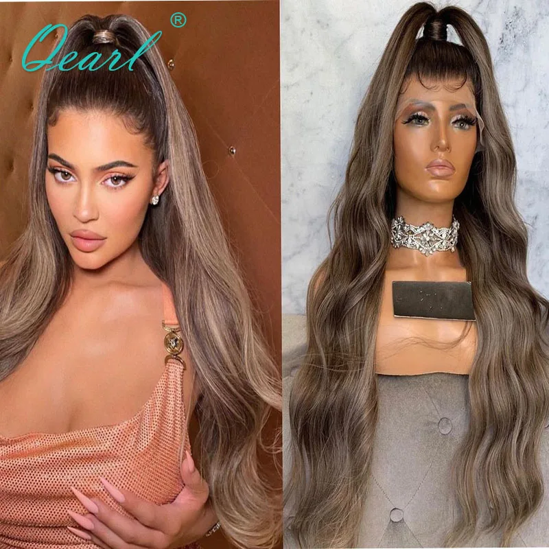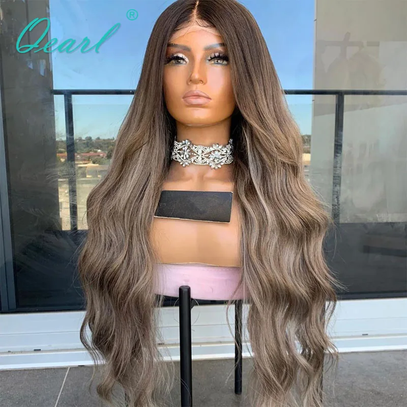 Парик из натуральных волос, 13x6, коричнево-серые, светлые, с мелированием, на фронтальной сетке, для женщин, 150%, предварительно выщипанные, Qearl