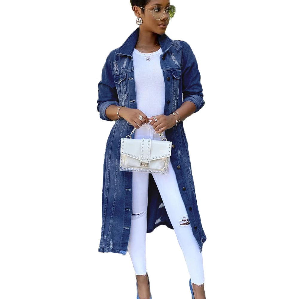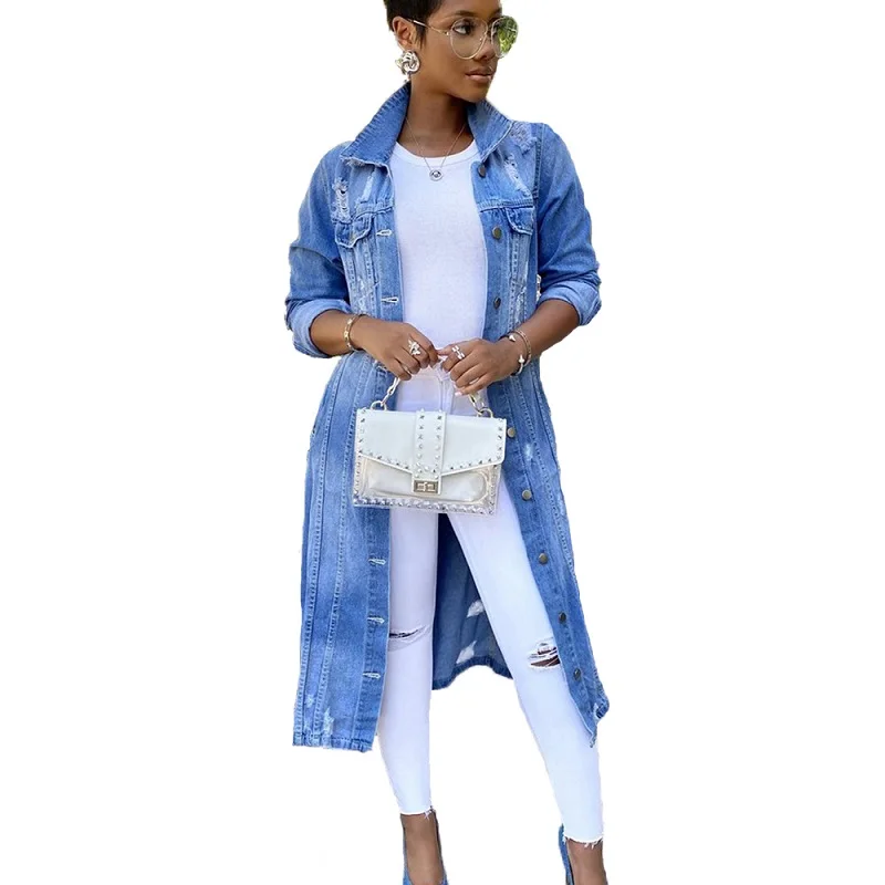 Длинные джинсовые куртки женские осенние сексуальные рваные джинсы ...