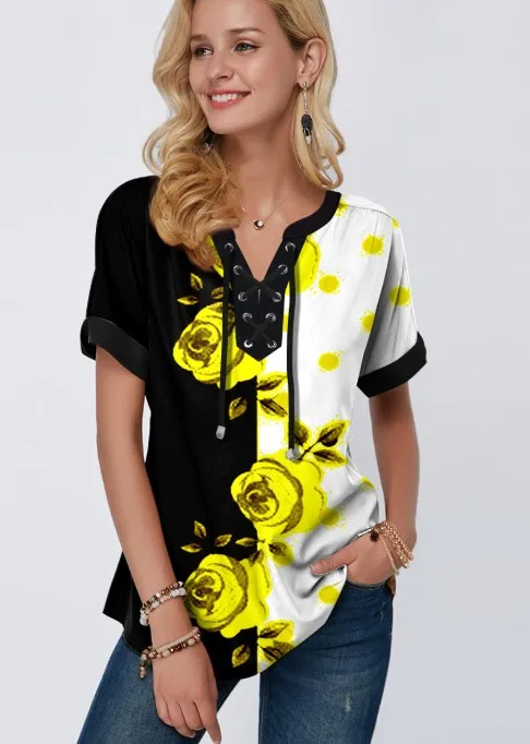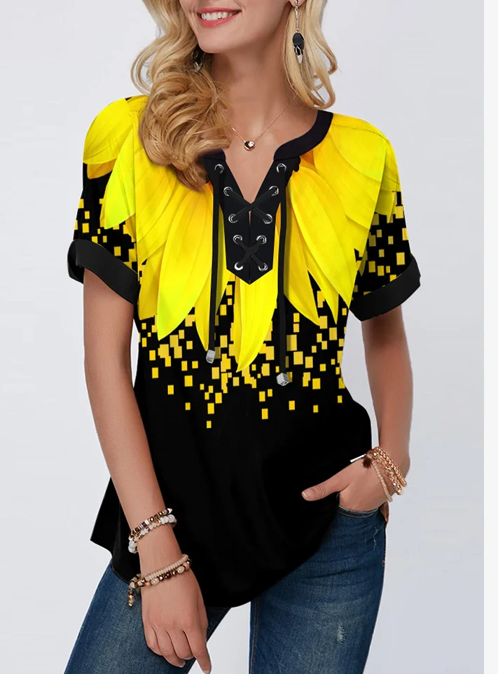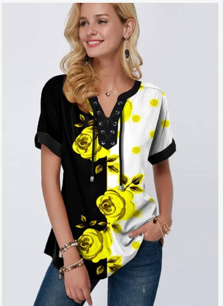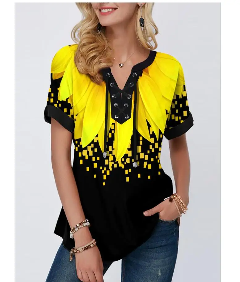 Женская кружевная блузка в стиле бохо, Свободный Повседневный Топ с V-образным вырезом и принтом, размера плюс 4xl 5x, лето 2020
