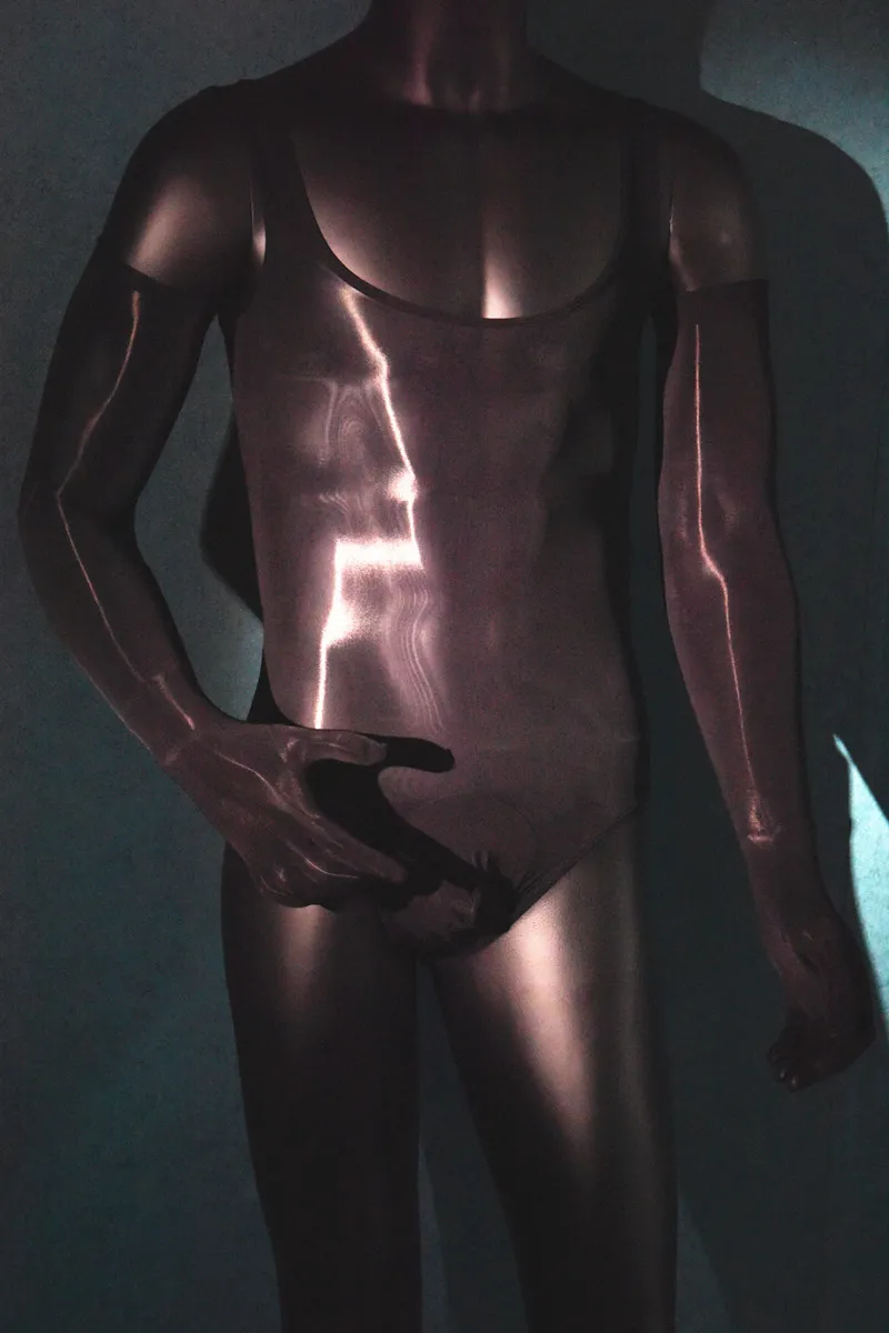 Сексуальные мужские чулки, глянцевое шелковое боди, Фетиш-белье, эр...