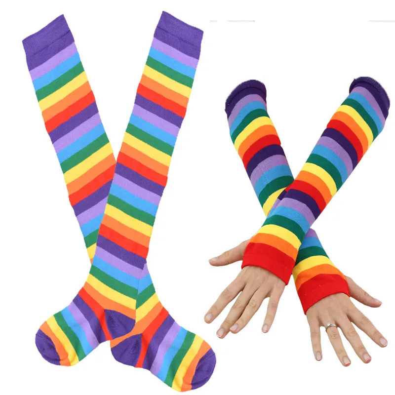 Красочные радужные колготки, полосатые теплые перчатки с высоким пл...