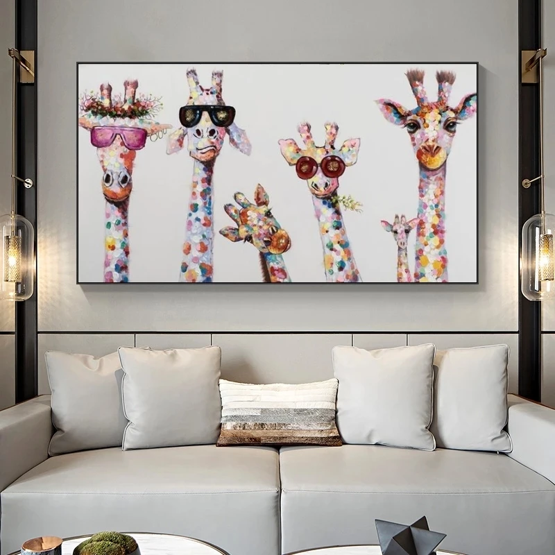Забавный Жираф в очках, холст, плакаты и принт, абстрактный жираф, семейный холст, настенные декоративные картины, декор детской комнаты