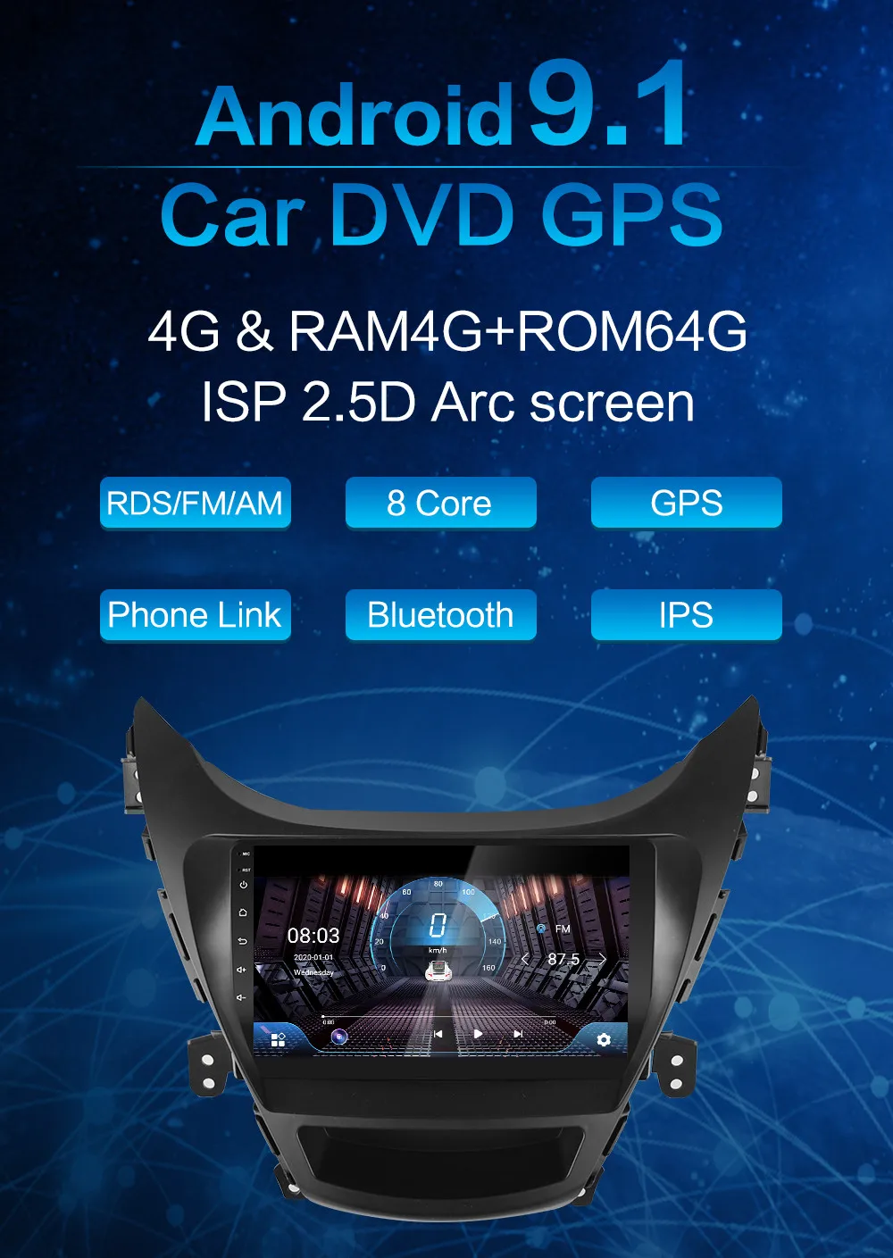 Подключение к смартфону, зеркальное соединение, двойное управлениеПолный емкостный сенсорный экран управленияBluetooth 4,4 встроенный, hands-free, телефонная книга● A2DP воспроизводит музыку с мобильный телефон на радио9 "1024*600 HD цифровой дисплей● Система Android 10,0● Встроенная флэш-память DDR3 8G 128G● Встроенный WiFi 4GВход камеры заднего видаИнтегрированный усилитель на полевых МОП-транзисторах 4x50 Вт.FM интегрирует 18 предварительно настроенных сайтов● Частотный диапазон FM: 87,5-108 МГцДва задних usb-входа● Управление рулевым колесомМатериал: металлический пластикМесто установки: консольная машинаПредварительно установленная карта: sygic Navitel (опционально)Тип экрана: цифровой сенсорный экранРазмер экрана: IPS HD 2.5D 9 дюймовРазрешение экрана: 1024x600Язык OSD: английский, русский, немецкий, французский, итальянский, испанский, арабский, иврит, японский, чешский, португальский, румынский, турецкий, корейский и т. д. 60 языков. И многое другоеВход AC/DC 14,4 V.