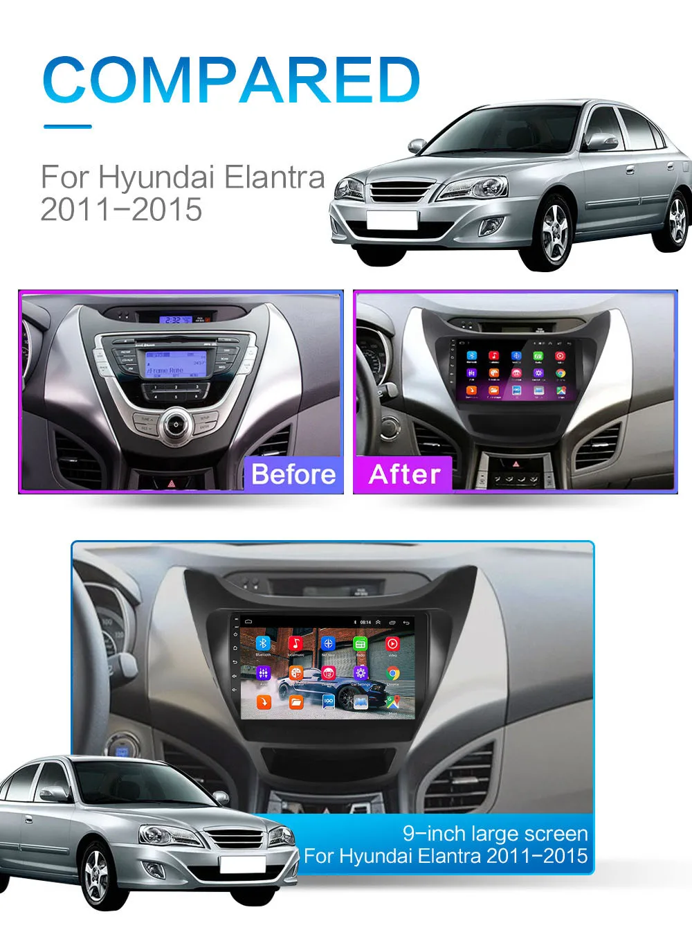Android 10,0 автомобильное радио Hyundai Elantra 2011 2012 2013 9 дюймов 1024*600 8 ядер wifi Bluetooth Видео Аудио мультимедиа 2 din автомобильный dvd плеер