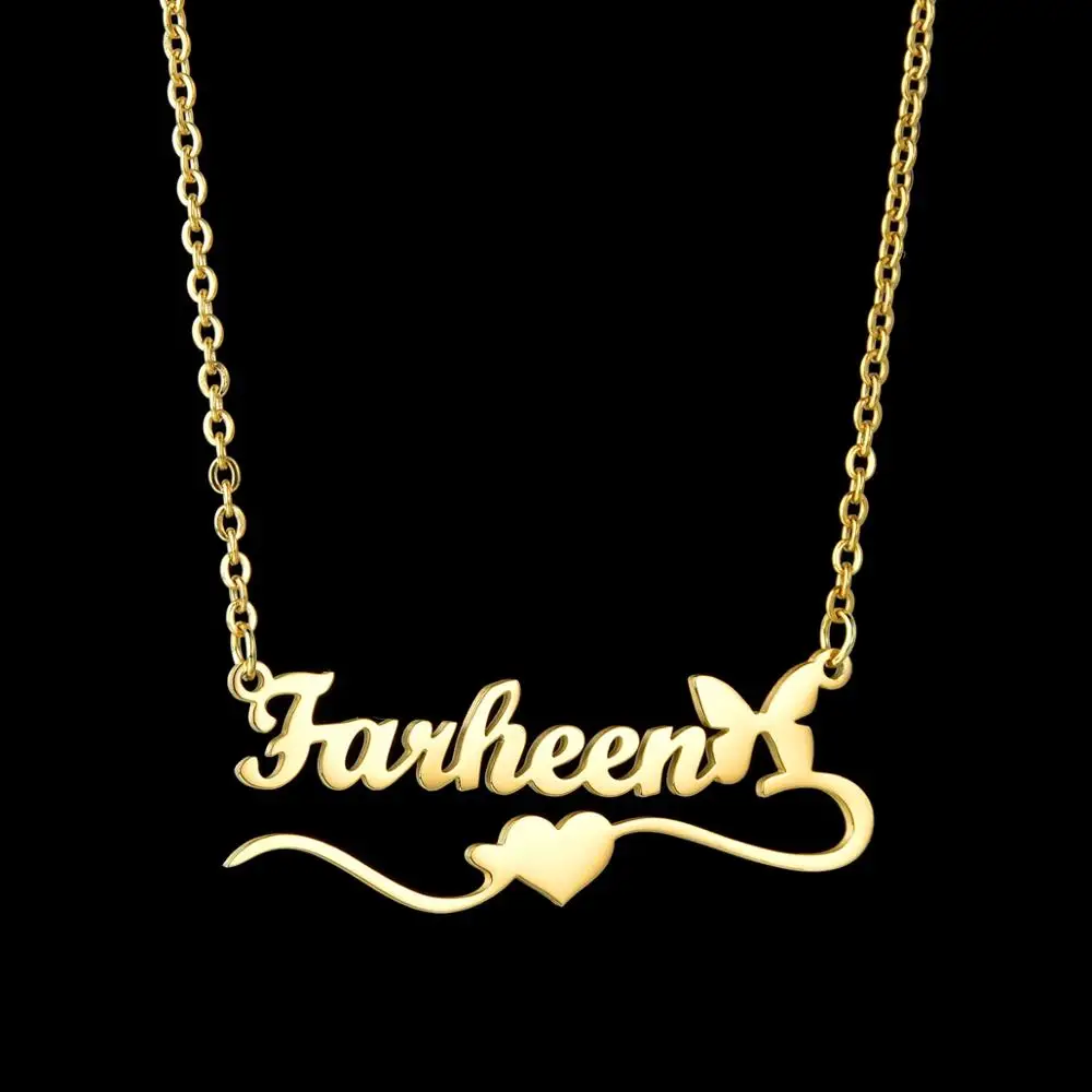 Название: Goxijite модное индивидуальное именное ожерелье с бабочкой, нержавеющая сталь, начальное имя, сердечко, ожерелья для женщин, подарок для влюбленных
