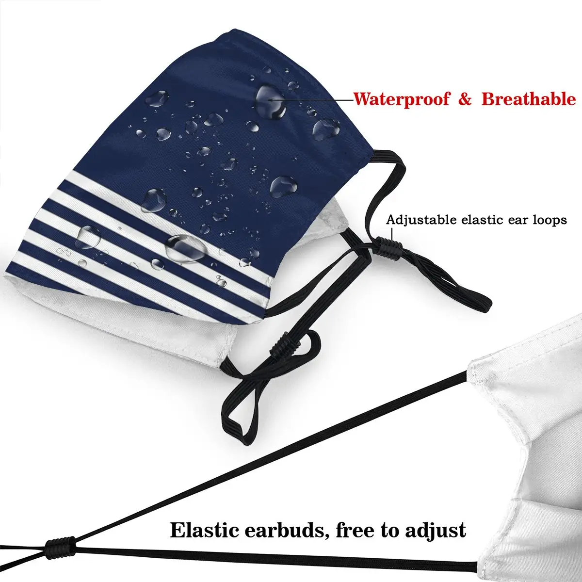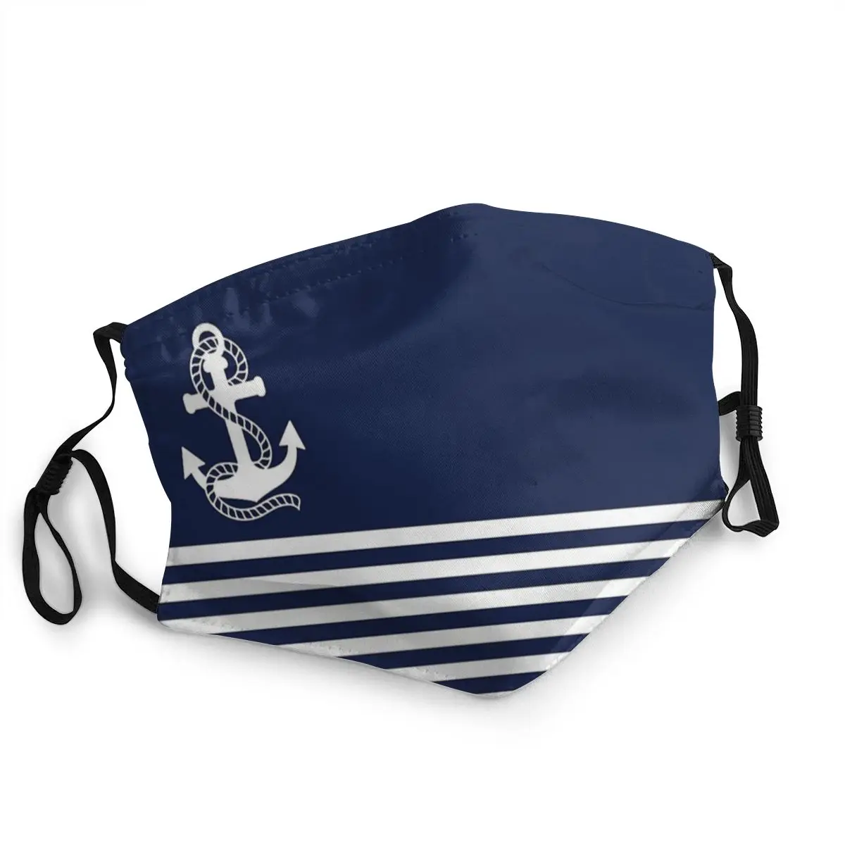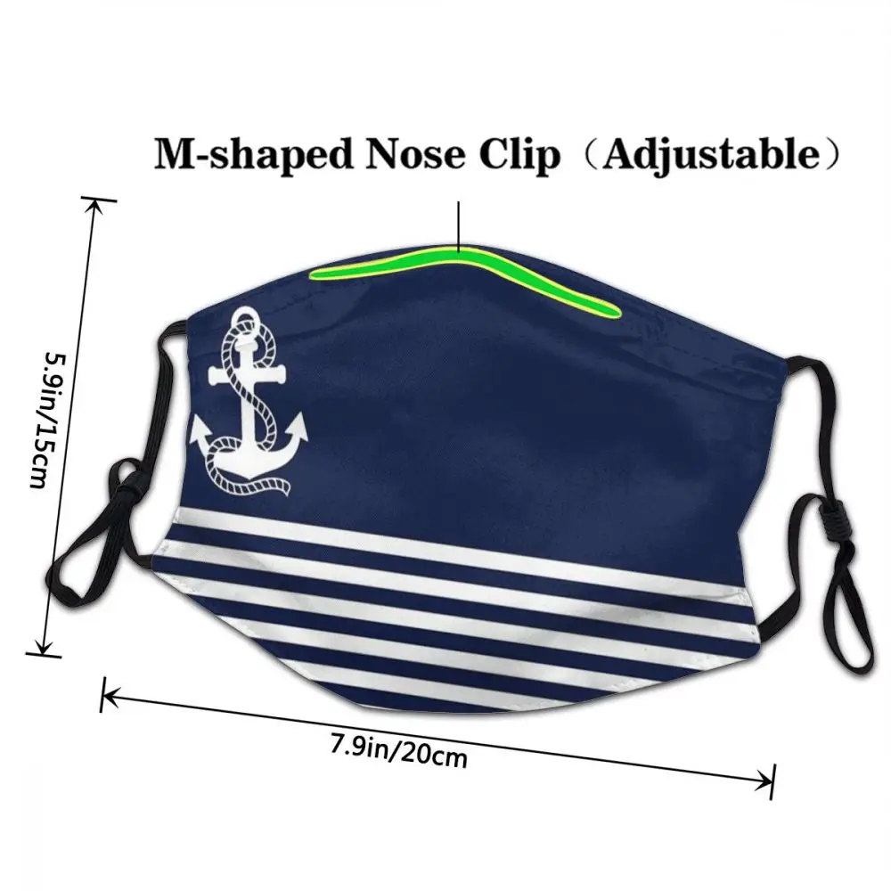 Маска для лица морская темно-синяя в полоску с белым якорем, многоразовая маска против смога с фильтрами PM2.5, защитная накладка
