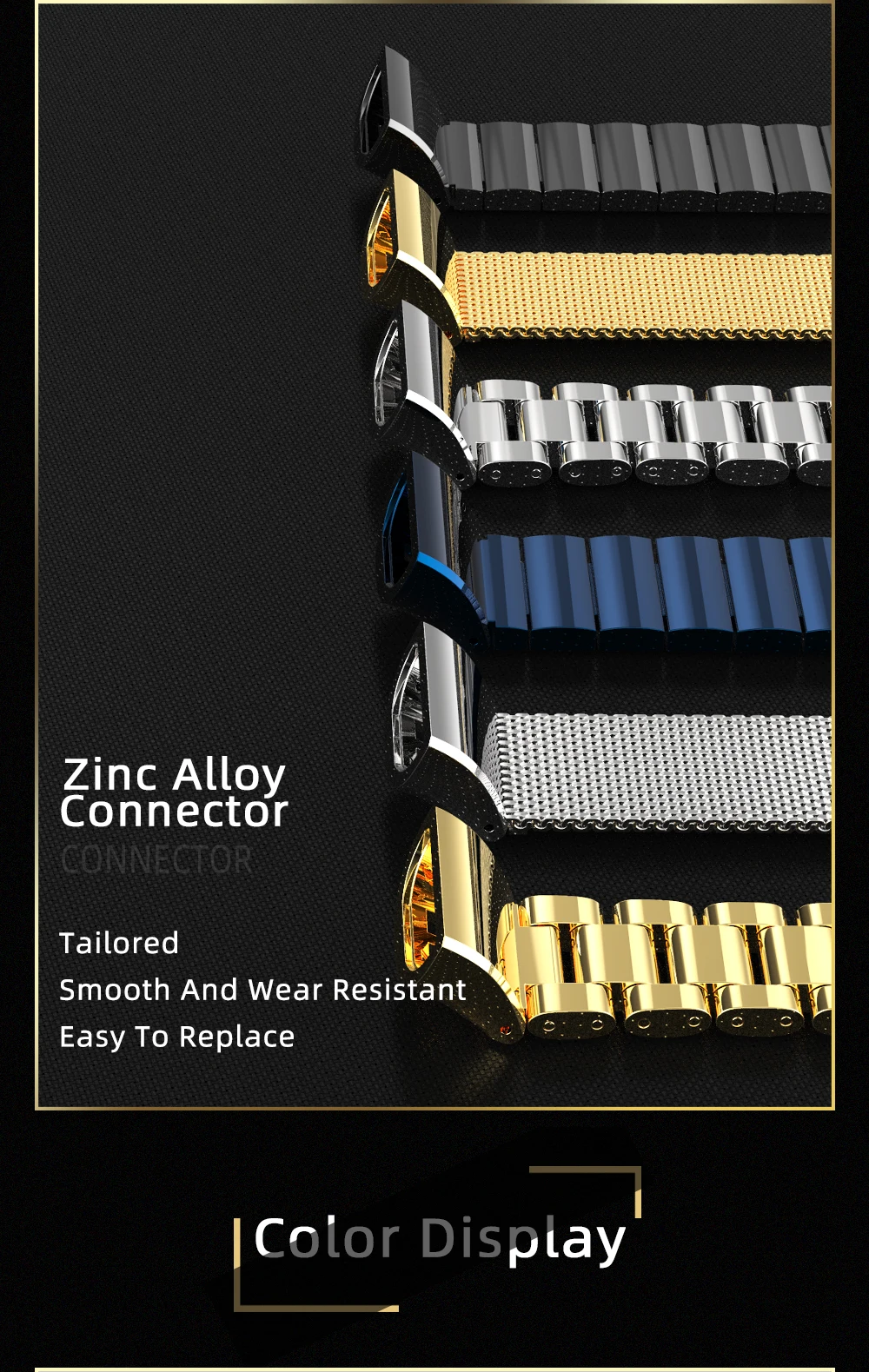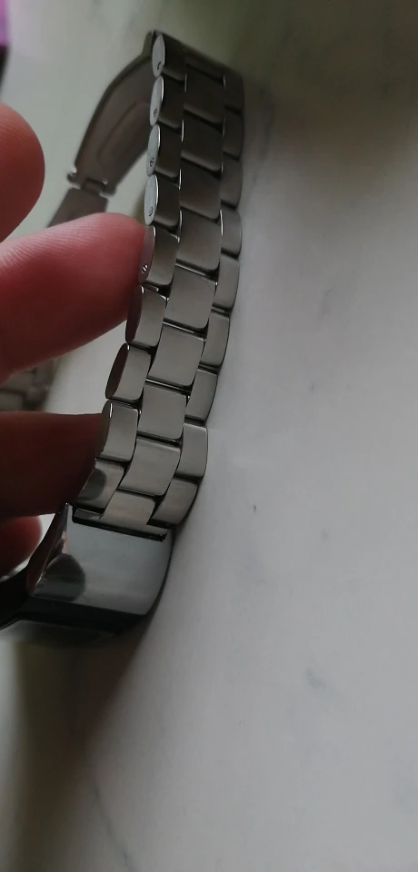 Цвет такой же как на фото. Материал хороший, но само собой не очень дорогой материал. Но тут все честно. Минус бал за крепежи для звеньев, некоторые очень туго вытаскивались, из-за этого погнулся штырь. Также в комплекте есть дополнительные крепежи к браслету, качество их похуже чем оригинальные, но их много.