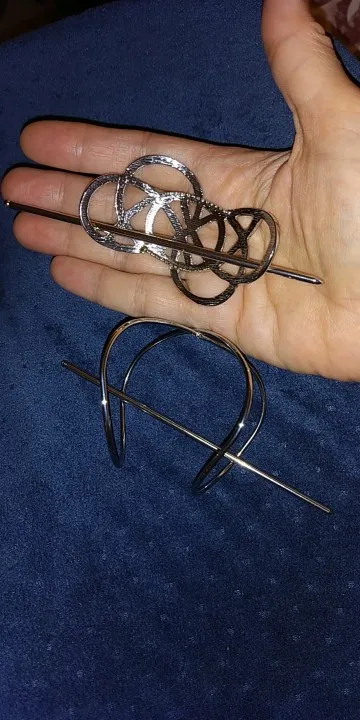 Хороший металлический штифт. Но слишком большой, не держит прямые волосы (хотя и длинные 55 см) :( Не держится без резиновой ленты