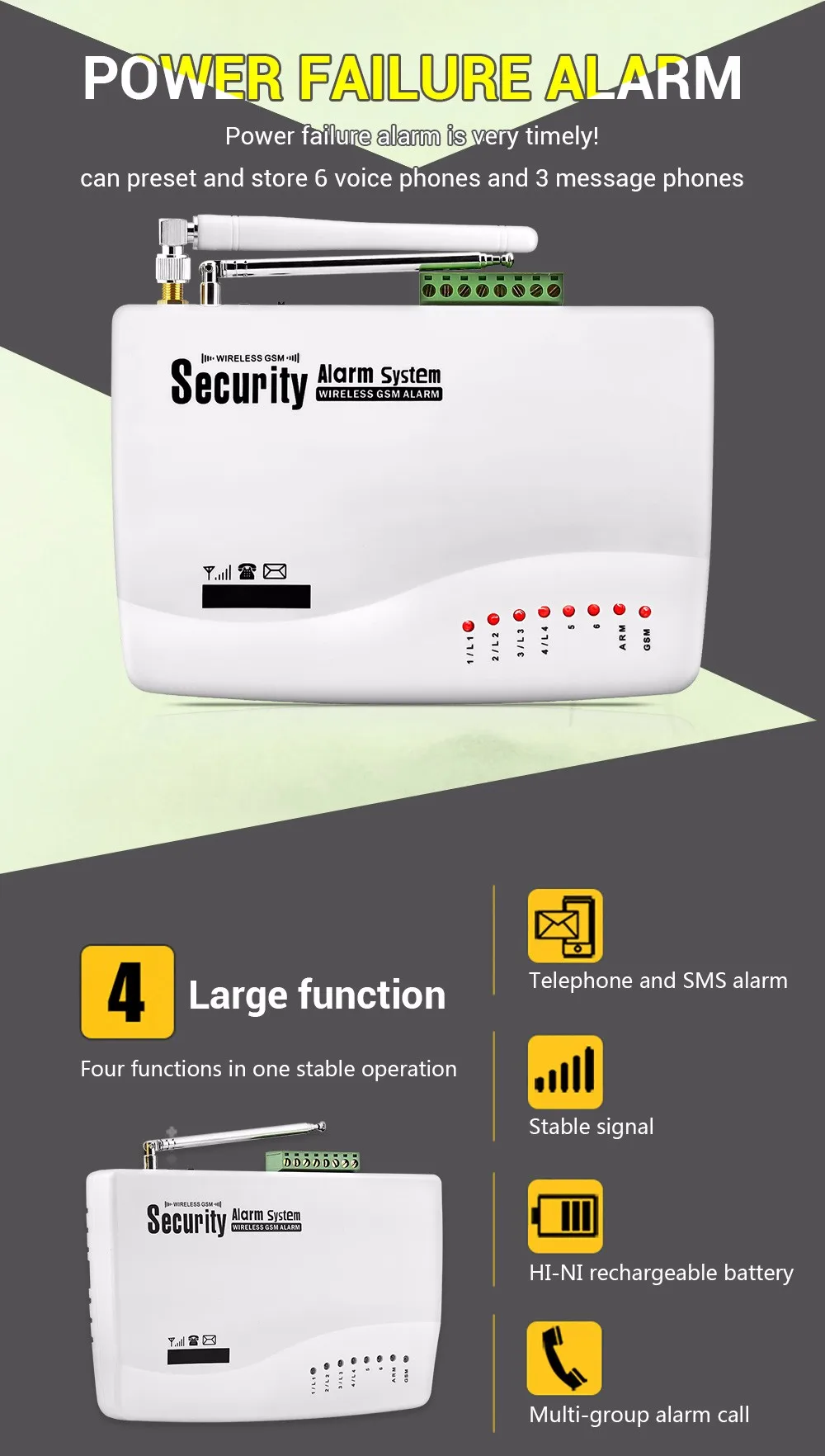(2) сигнализация с голосовой подсказкой для коммерческого и домашнего использования построена на передовых микропроцессорных технологиях с передовой мощностью обработки сигналов GSM digital.