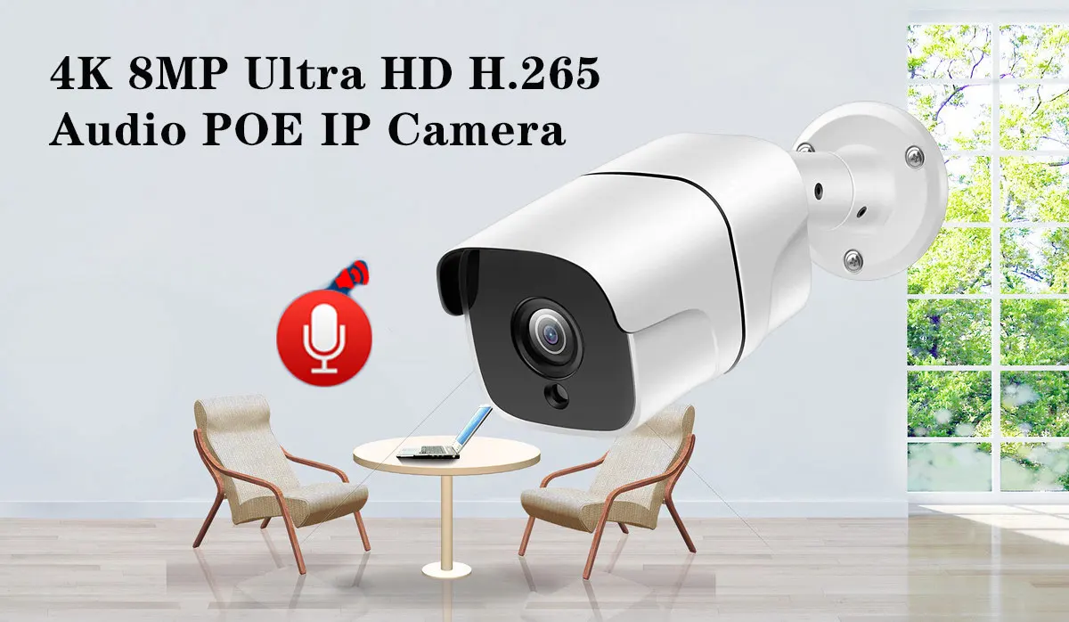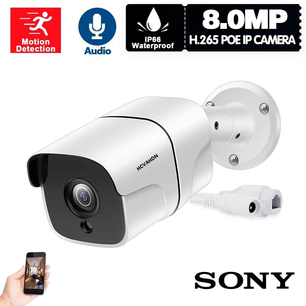 Наружная Водонепроницаемая цилиндрическая IP-камера видеонаблюдения, с датчиком движения, 8 Мп, POE, 4K