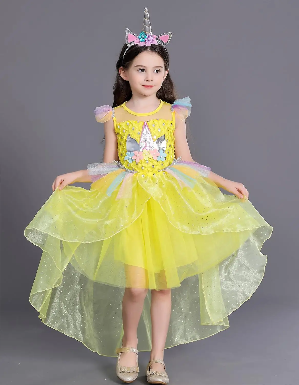 Платье с единорогом для девочек, радужные платья принцессы с пачкой...