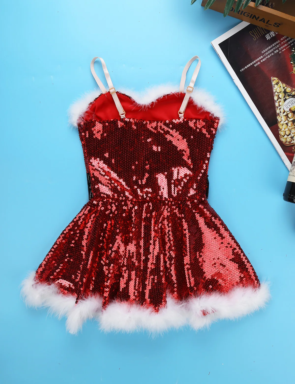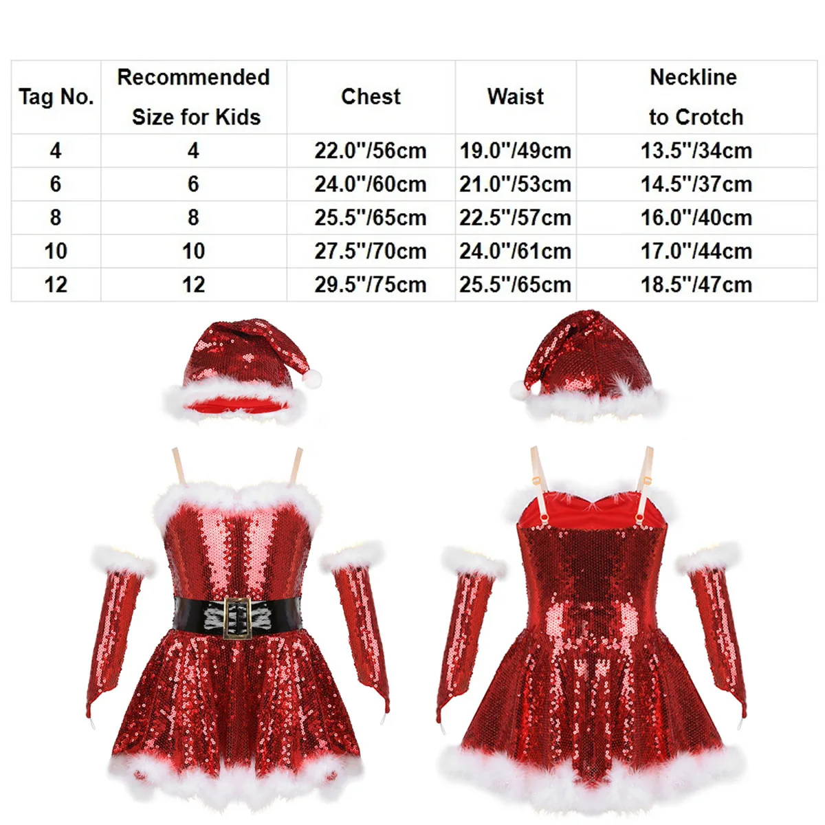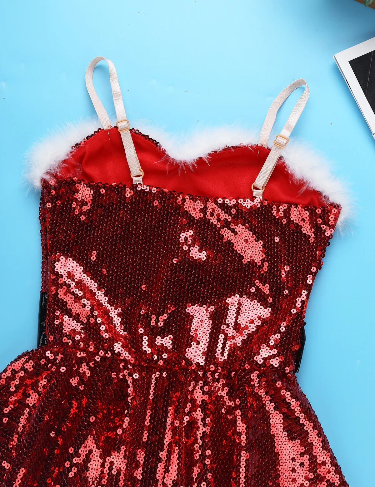 Детский Рождественский костюм TiaoBug с красными блестками, нарядное платье для косплея для девочек, праздничная одежда для сценического представления Санта-Клауса на Рождество