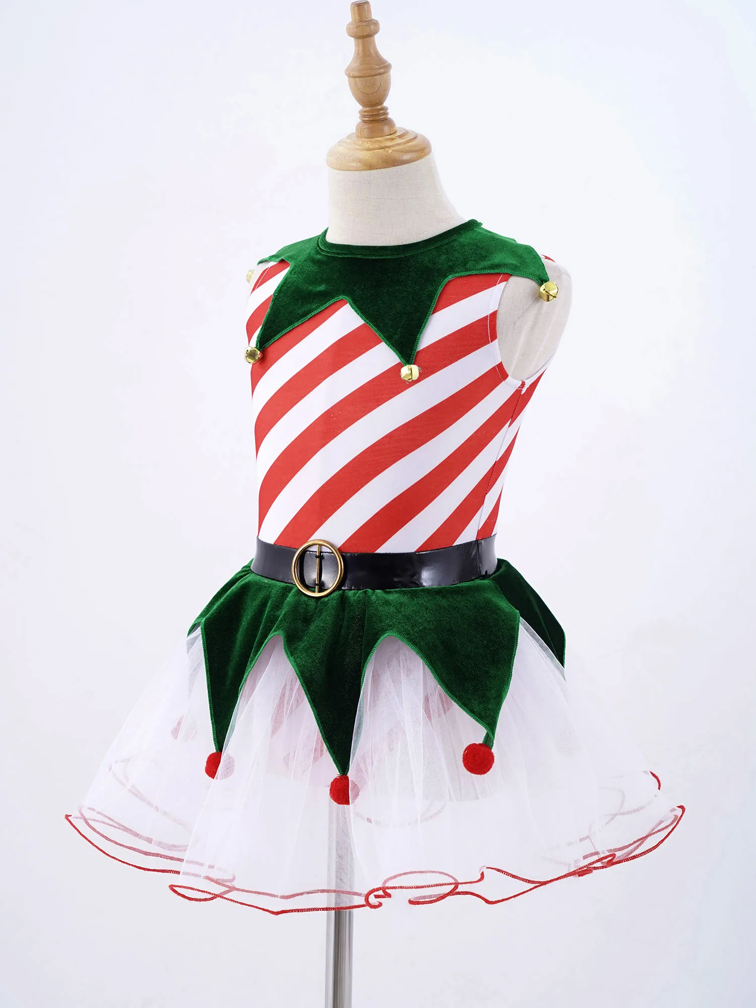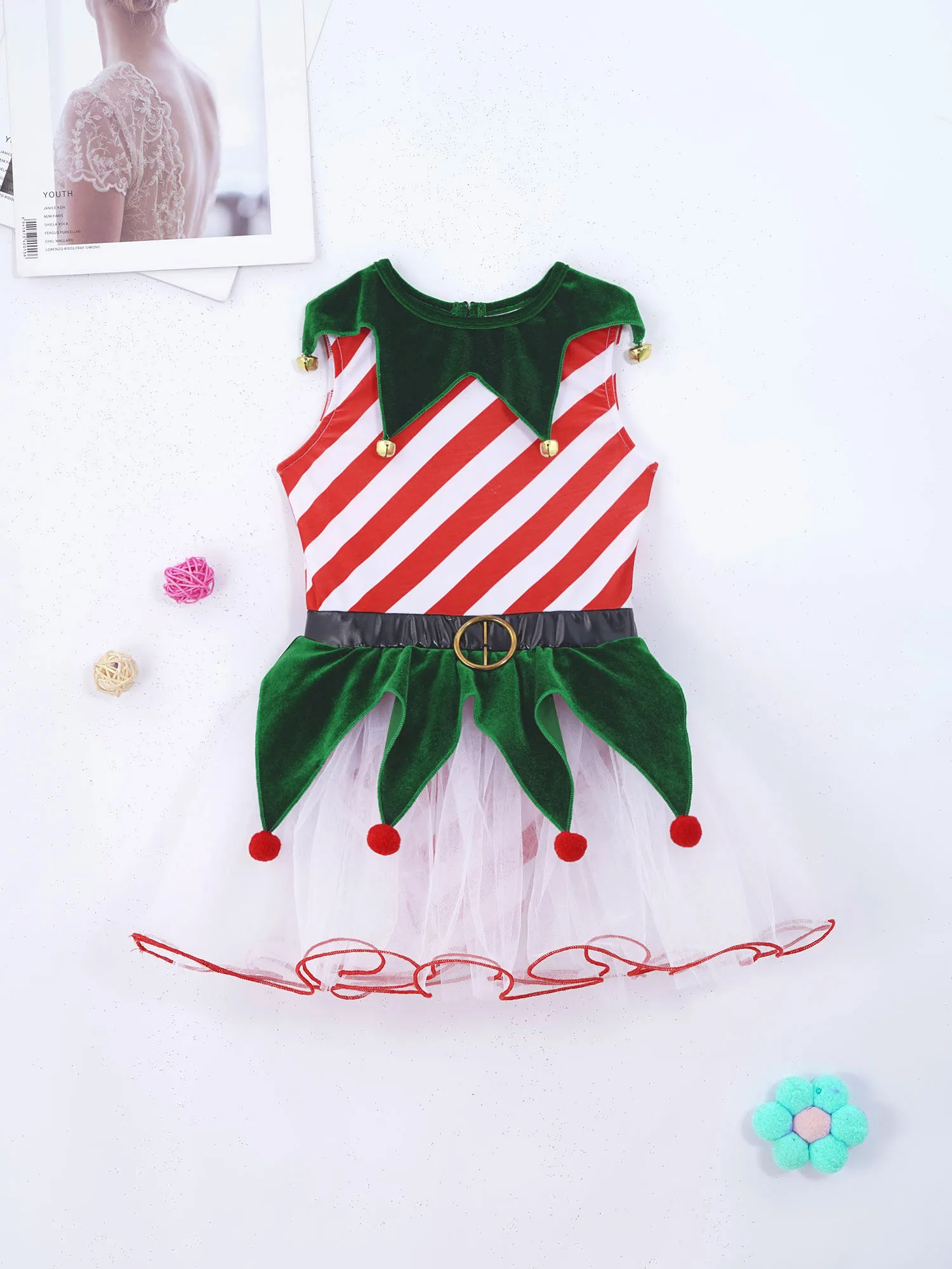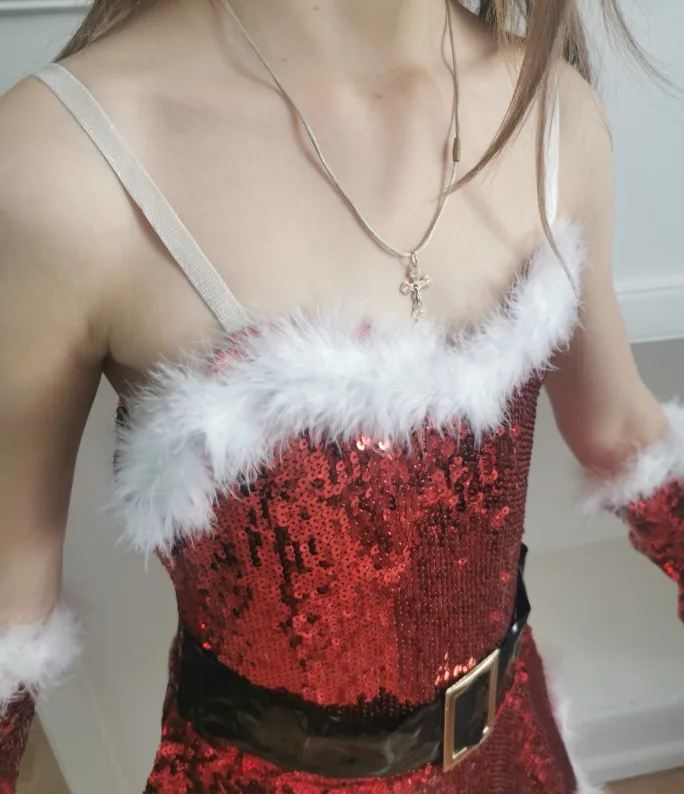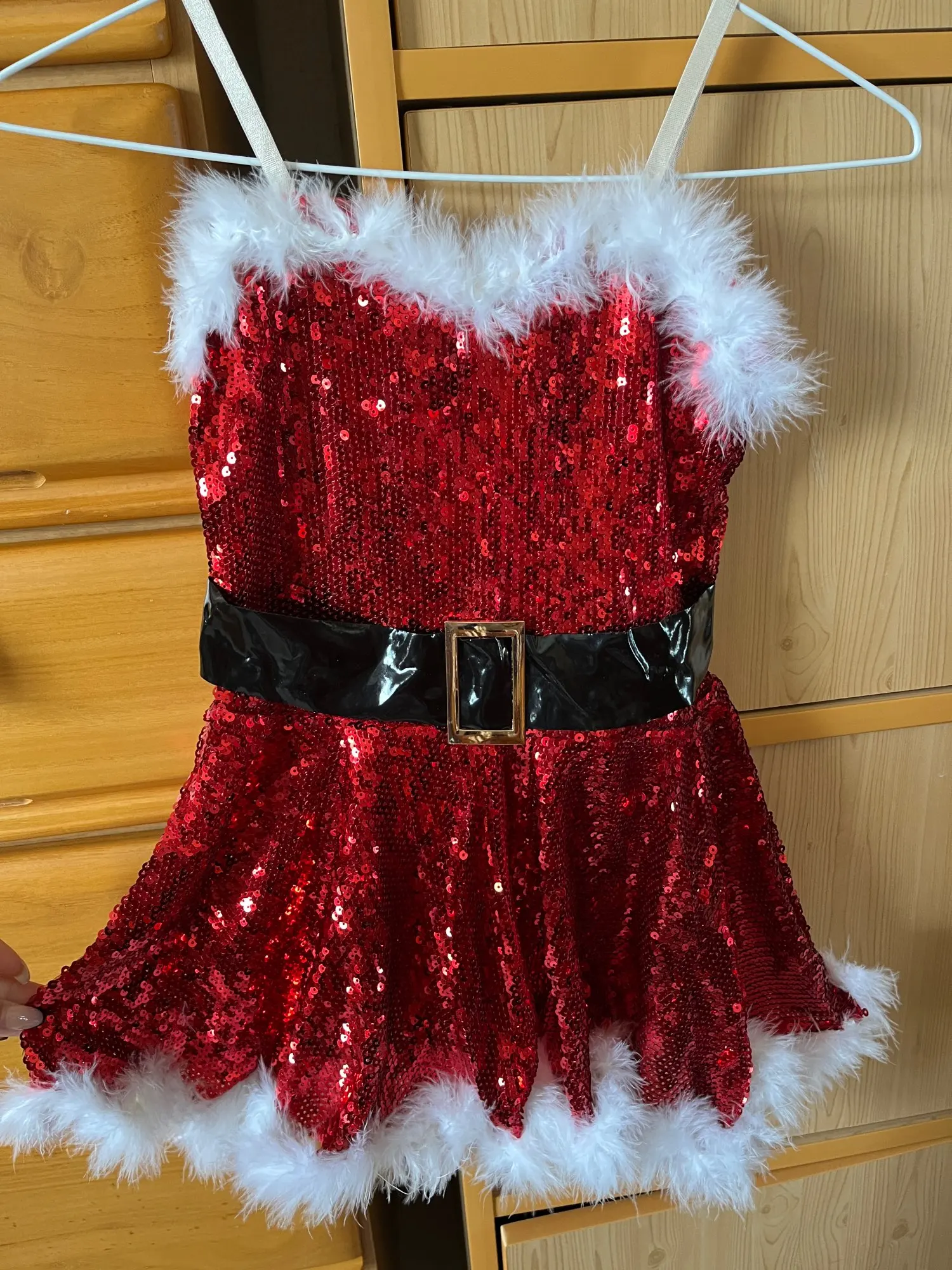 Детский Рождественский костюм TiaoBug с красными блестками, нарядное платье для косплея для девочек, праздничная одежда для сценического представления Санта-Клауса на Рождество