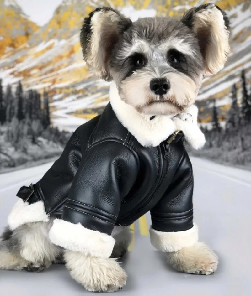 Теплый Зимний пуховик для маленьких собак, кожаная куртка, меховой ...