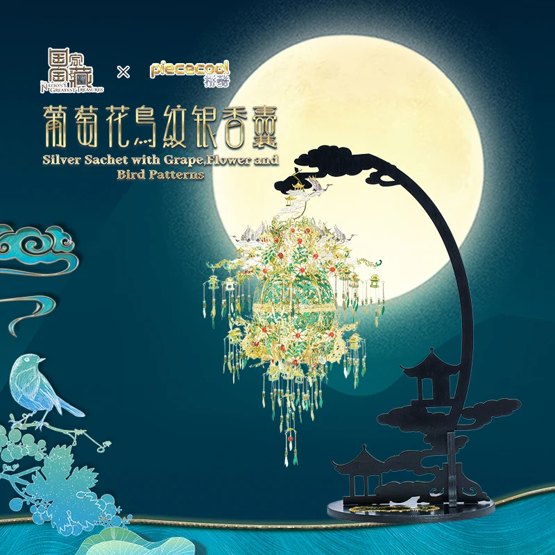 Кусок крутой 3D металлический пазл, Серебряное саше с узорами винограда, цветов и птиц, наборы моделей, DIY лазерная резка, сборная игрушка-пазл в подарок