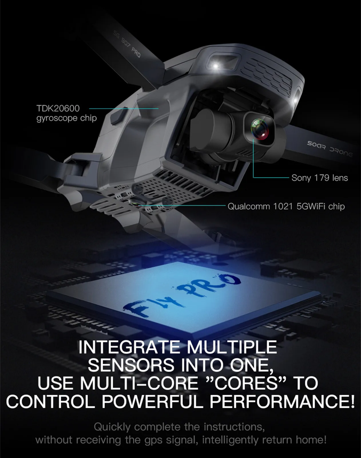 SG907 pro 2-Axis gimbal Камера 70 ° боковая 70 ° автоматическая Ремонт Вертикальный 110 ° 110 ° Автоматический ремонт GPS возвращается к Точка взлета с одной кнопкой, и низкая мощность возвращается в воздух, и Нет сигнала на возврат. GPS Smart Follow: после Самолет подключается к GPS, приложение поддерживает функцию включения, и Самолет следует за мобильный телефон. Изображение: 1-5 м от Самолет для определения предмета и выполнения автоматического полета. Съемка жестов Распознавание: в пределах 1-5 м от самолета, сделайте жесты камеры/камеры Жестом к камере. Многоточечное планирование Полет маршрута: самолет автономно летает в соответствии с заданным Маршрут, и игрок концентрируется на съемке. Окружность точки: Найдите Центр вокруг и перемещайте желаемый радиус окружающего света с помощью джойстика. Восстановление самолета Функция: нажмите на значок gps-сигнала 3 раза, чтобы открыть карту Интерфейс, карта показывает конечное расстояние самолета, широту И долготы. Характеристики мВ: фильтры, Видеоэффекты, фоновая музыка, фото/видео обмен Время полета: около 15 минут Время зарядки: около 2 Часов Расстояние управления (бесплатно Помехи и отсутствие окклюзии):800 м 5G Wi-Fi передача изображения Расстояние (свободное взаимодействие и отсутствие окклюзии):500 м GPS следуй за мной: 30 м Изображение Следуйте за мной: 1-5 м Фокусное расстояние: 50x зум Жесты руки Съемка/видеозапись: 1-5 м Режим SD: 1208*720 (приложение) HD Режим: 2048*1080 (приложение) Версия 4K Разрешение видео 4K:4096*3072P Разрешение фото 4K: 4096*3072P Камера пониженного обзора: 1280*720p Частота кадров: 25 кадров в секунду Емкость интеллектуального лития Аккумулятор: 7,6 В 1600 мАч Окружность фиксированной точки Противовзрывная антенна Фотография Фото/видео поделиться Двойной режим GPS/ГЛОНАССПосылка включает в себя: