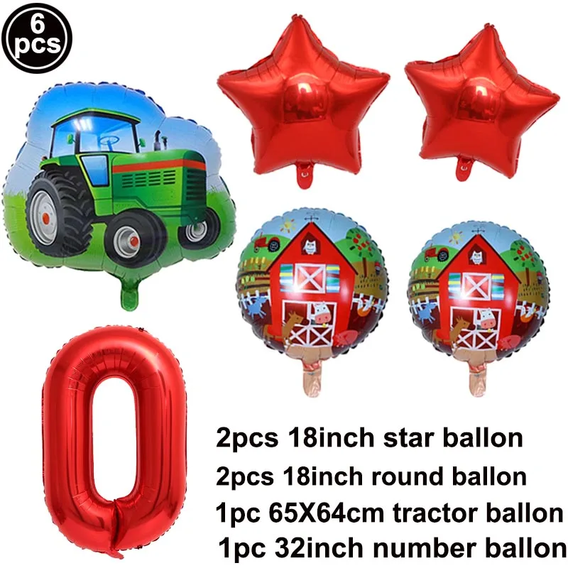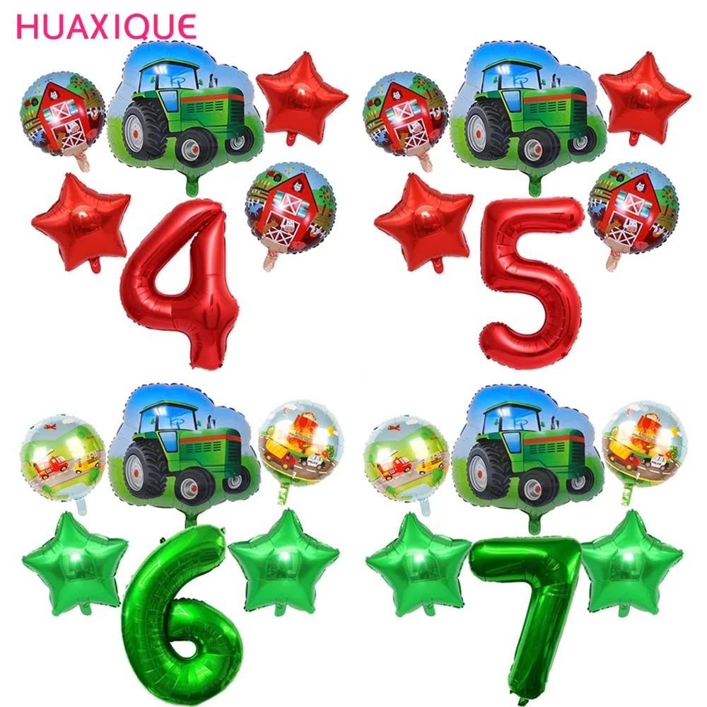 6 шт.компл. украшение для темативечерние на ферме, цифры 32 дюйма, бульдозер, трактор, фольгированный воздушный шар, воздушные шары, украшение для детского дня рождения