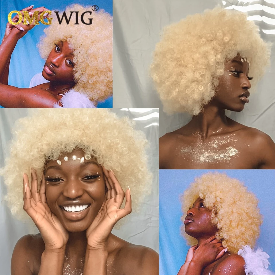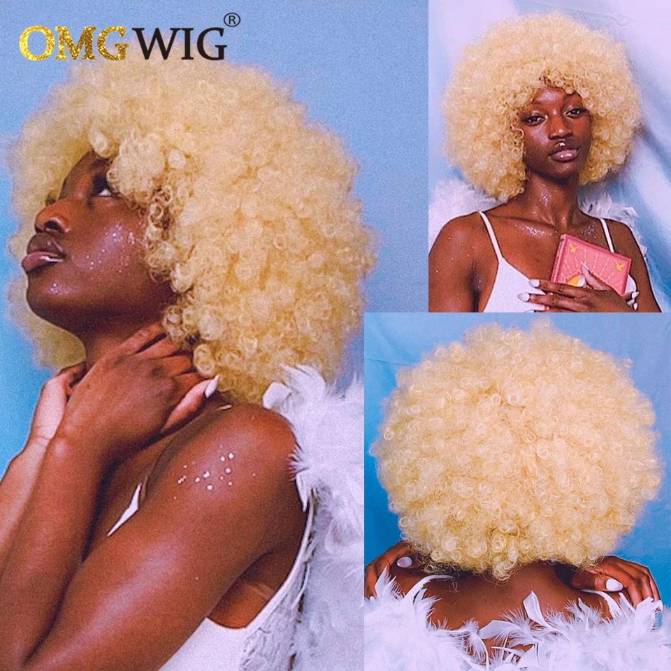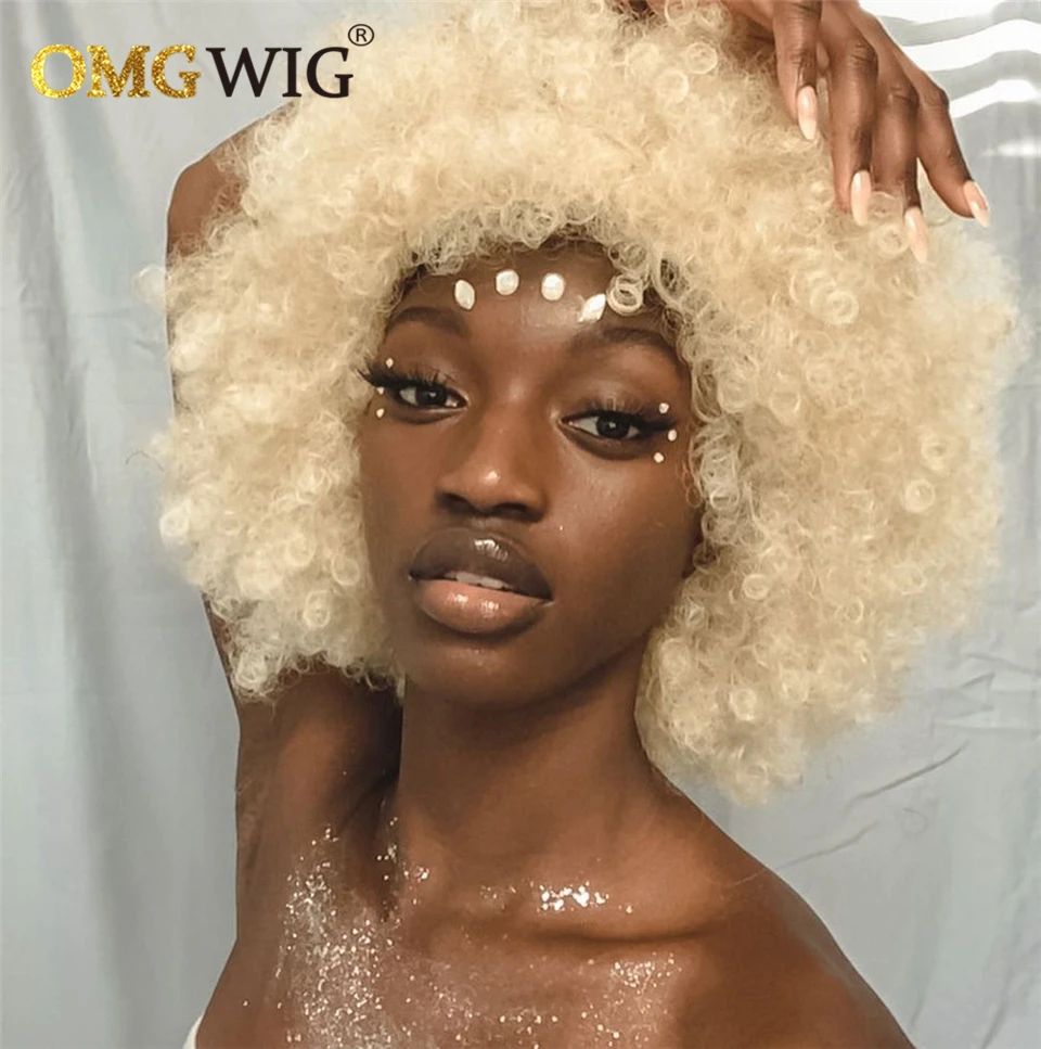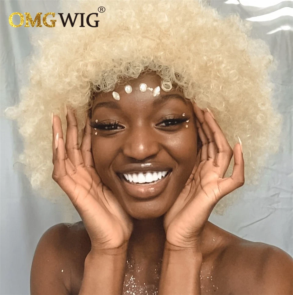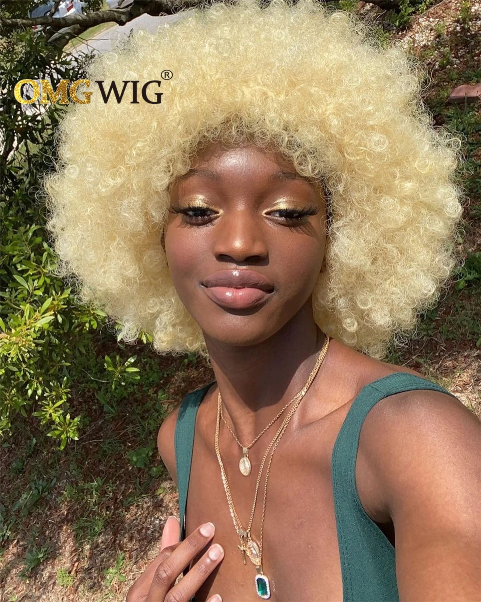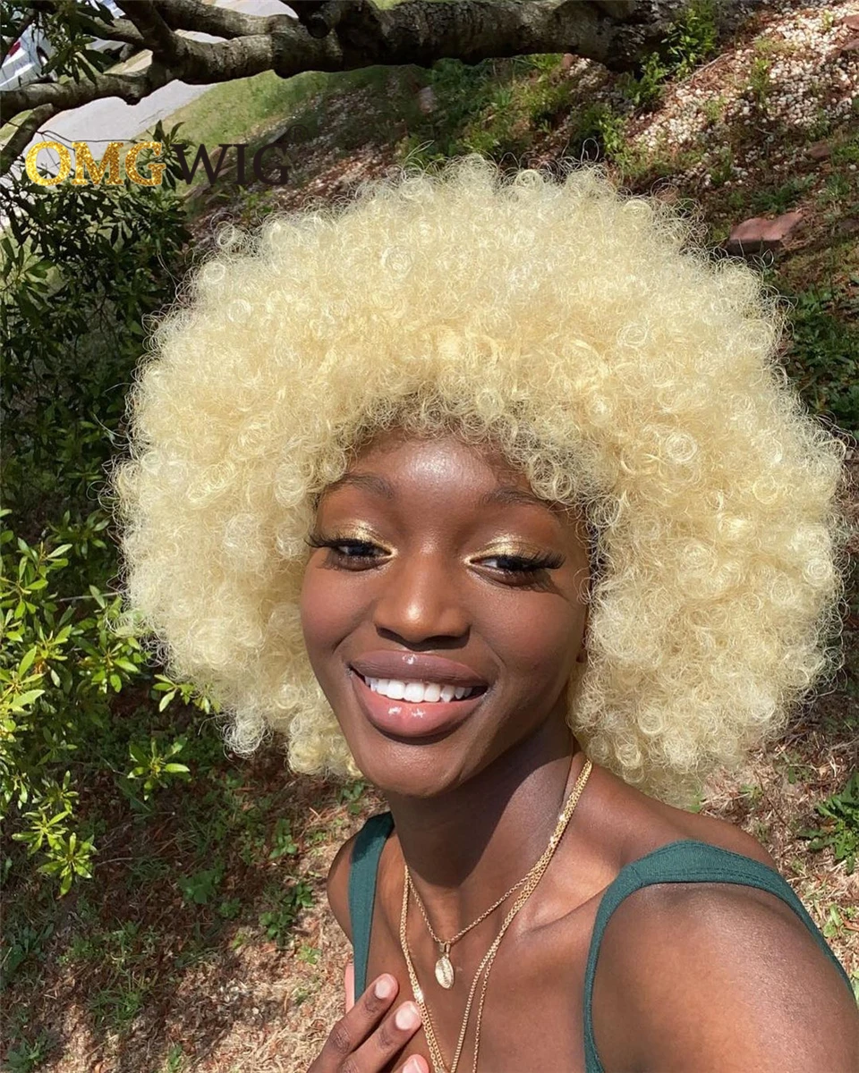 Афро кудрявые короткие кудрявые волосы боб фальшивая огранка без машинки 613 медовые блонд цвет ОМГ парики с челкой для черных женщин дешевый парик из человеческих волос
