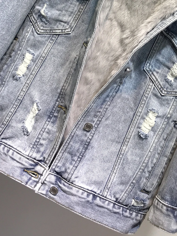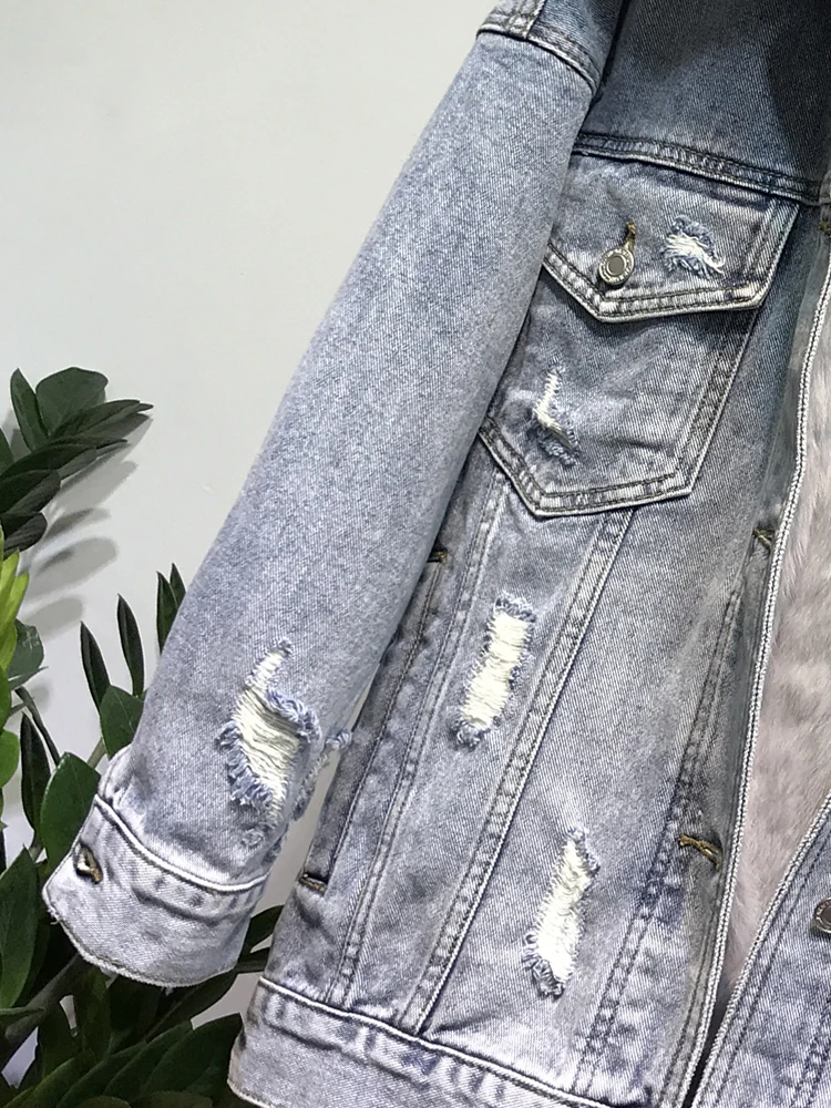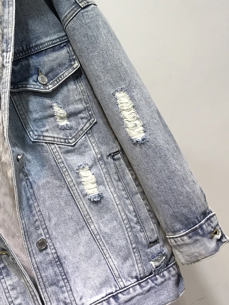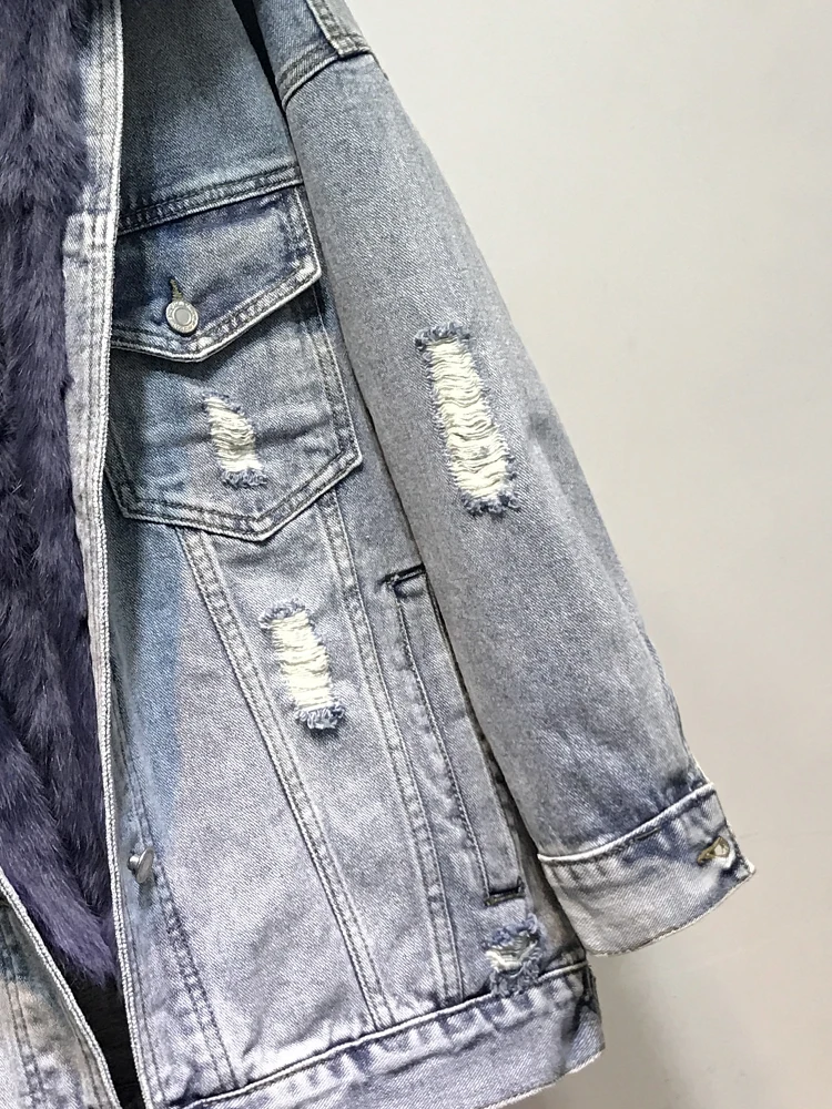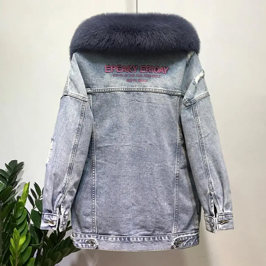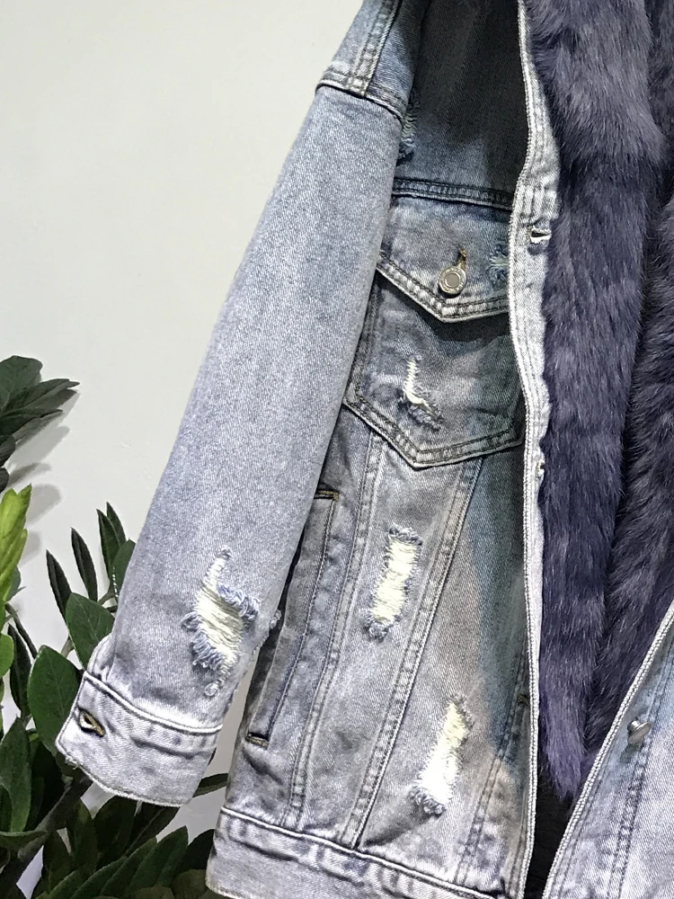 Женская джинсовая куртка, теплая зимняя куртка из натурального меха лисы и джинсовая подкладка из натурального кроличьего меха с вышивкой из перьев, F2465