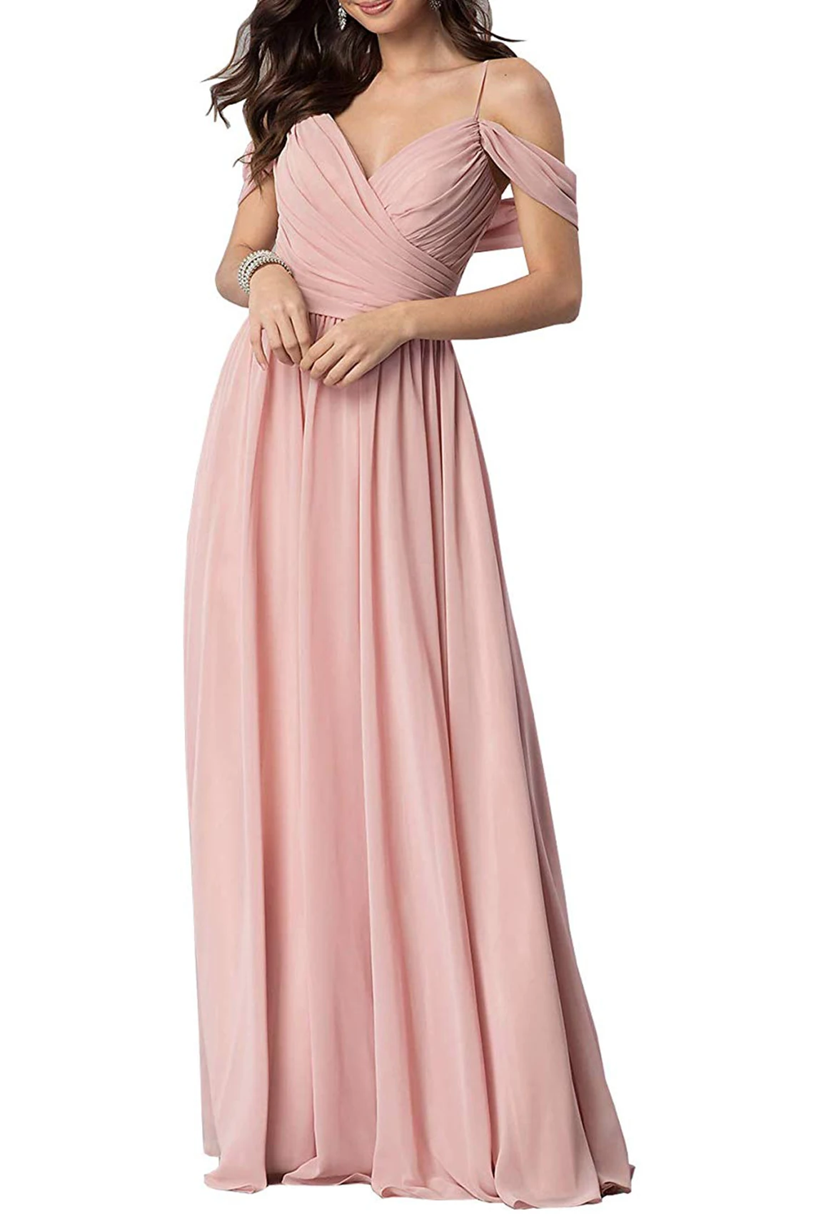 Женское шифоновое платье подружки невесты с открытыми плечами и рюшами, длинное платье для выпускного вечера, 2022