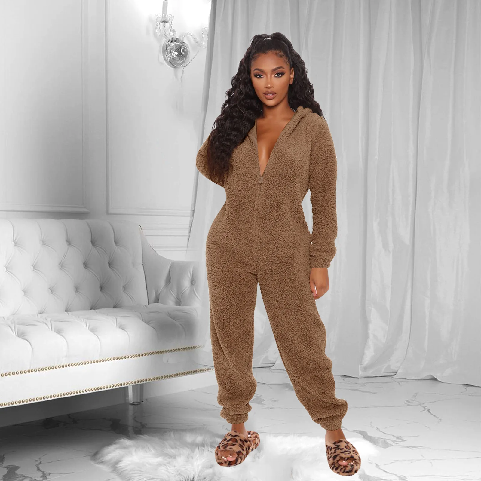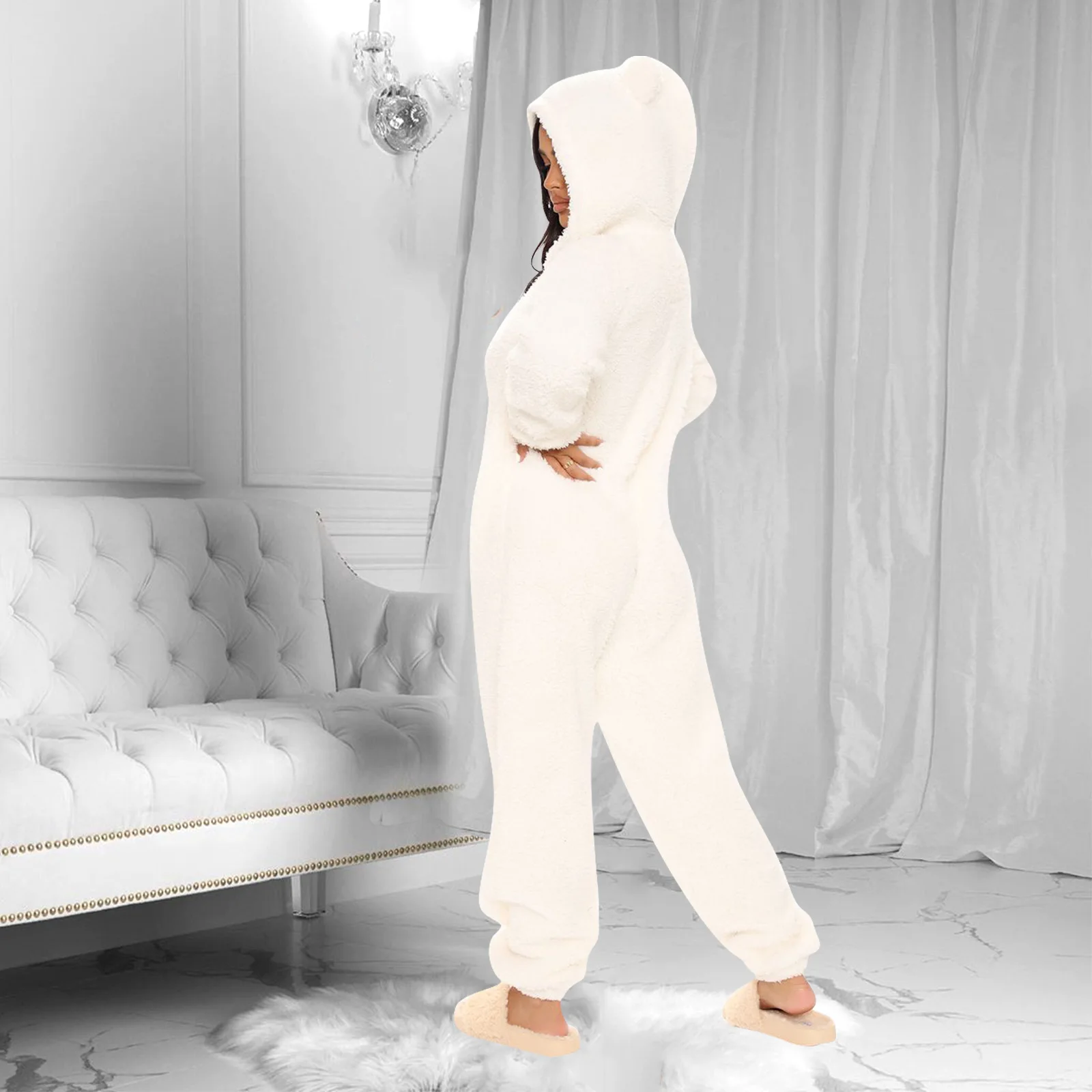 Зимний теплый Пижамный комбинезон женский пушистый флисовый комбинезон одежда для сна теплый комбинезон размера плюс капюшоном комплекты пижамы для женщин и взрослых