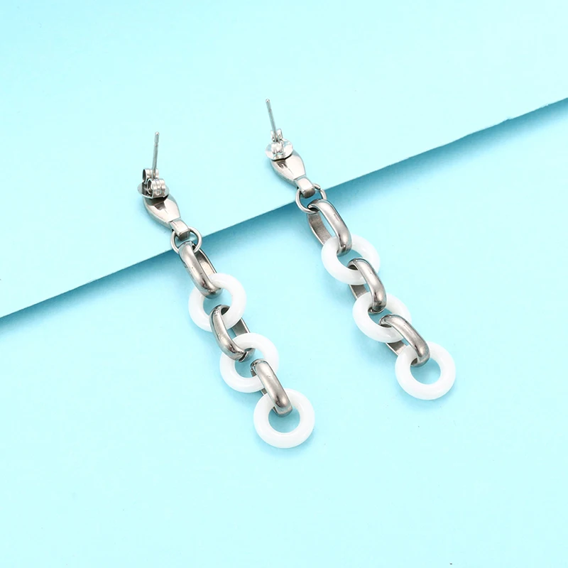 Модные подвесные черно-белые керамические круглые серьги из нержавеющей стали, не выцветают, ювелирные изделия для женщин, свадеб, девушек, рождественские подарки