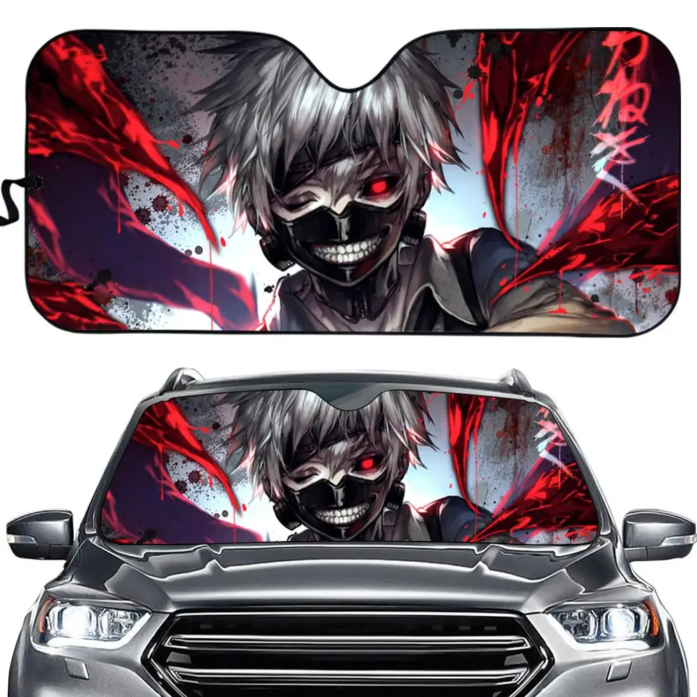 Автомобильные тени, японские Токийский Гуль, аниме, переднее ветровое стекло, солнцезащитный козырек, сохраняйте свою машину крутой. УФ солнцезащитный и тепловой отражатель, аксессуары