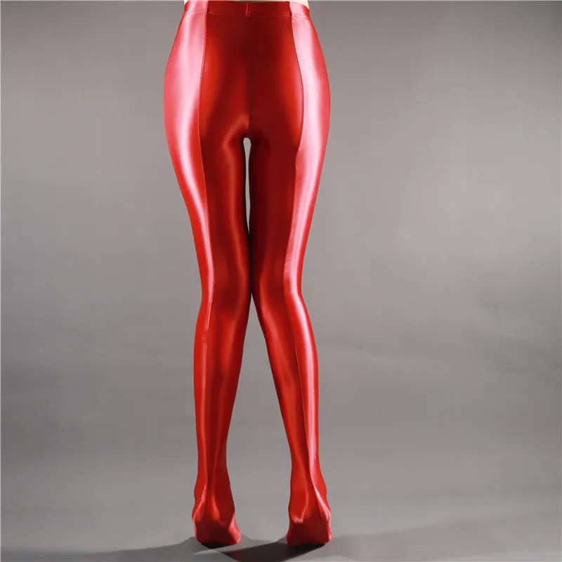 Сексуальные женские брюки-карандаш в полоску, полупрозрачные блестящие леггинсы ярких цветов, танцевальная одежда F20