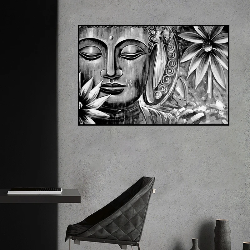 Серый Будда статуя холст картины религиозные буддийские произведения Будда лицо плакат домашний декор для гостиной спальни украшения