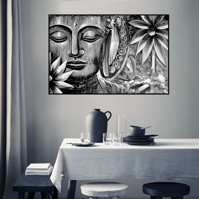 Серый статуя Будды из плотной ткани Картины религиозные буддийского произведения искусства Будды уход за кожей лица плакат домашний декор для Гостиная Спальня украшения
