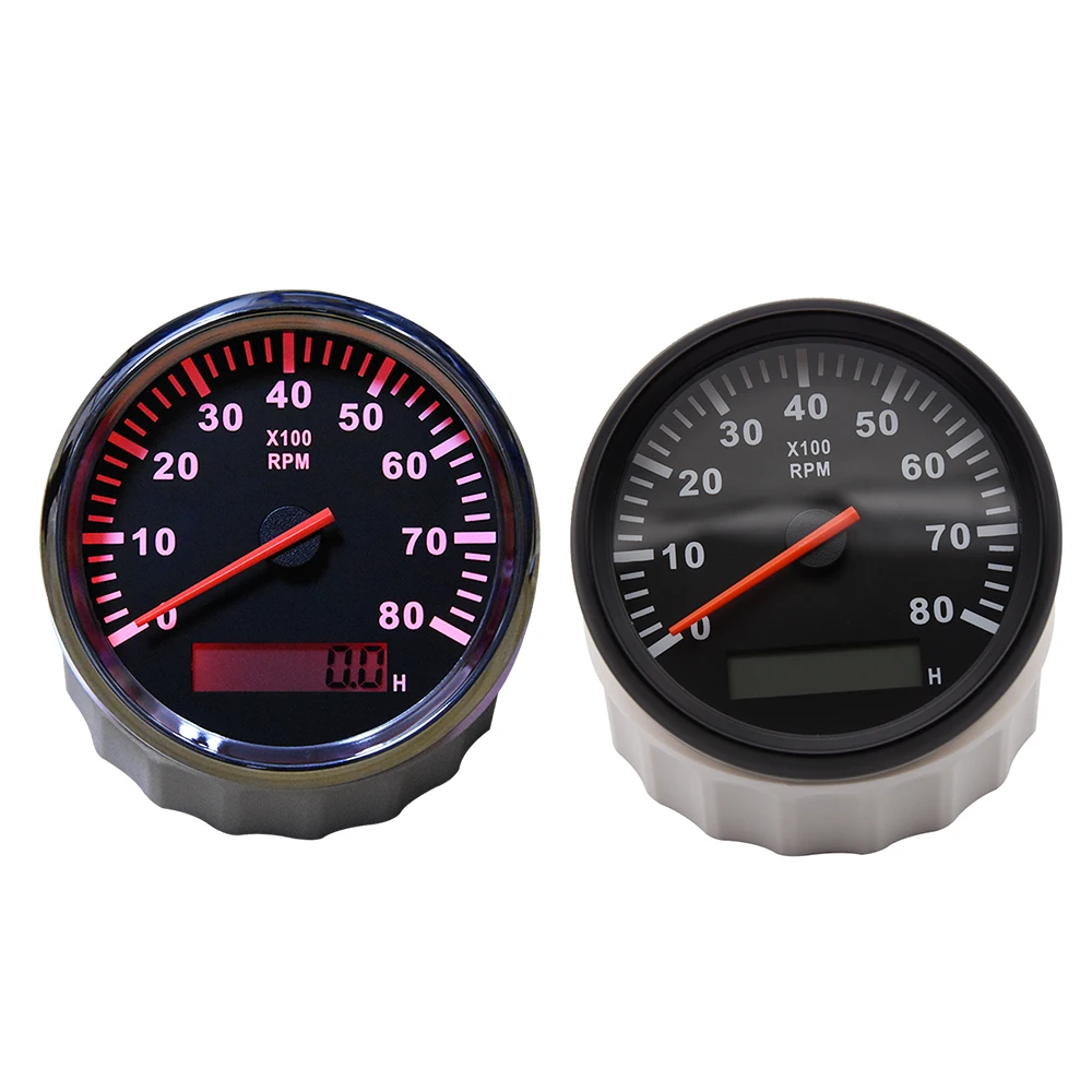 85 мм Тахометр красный Подсветка 0-8000 RPM Тахометр Датчик метр с счетчик моточасов для морская лодка яхта 8 крпм 12V/24V Тахометр датчики