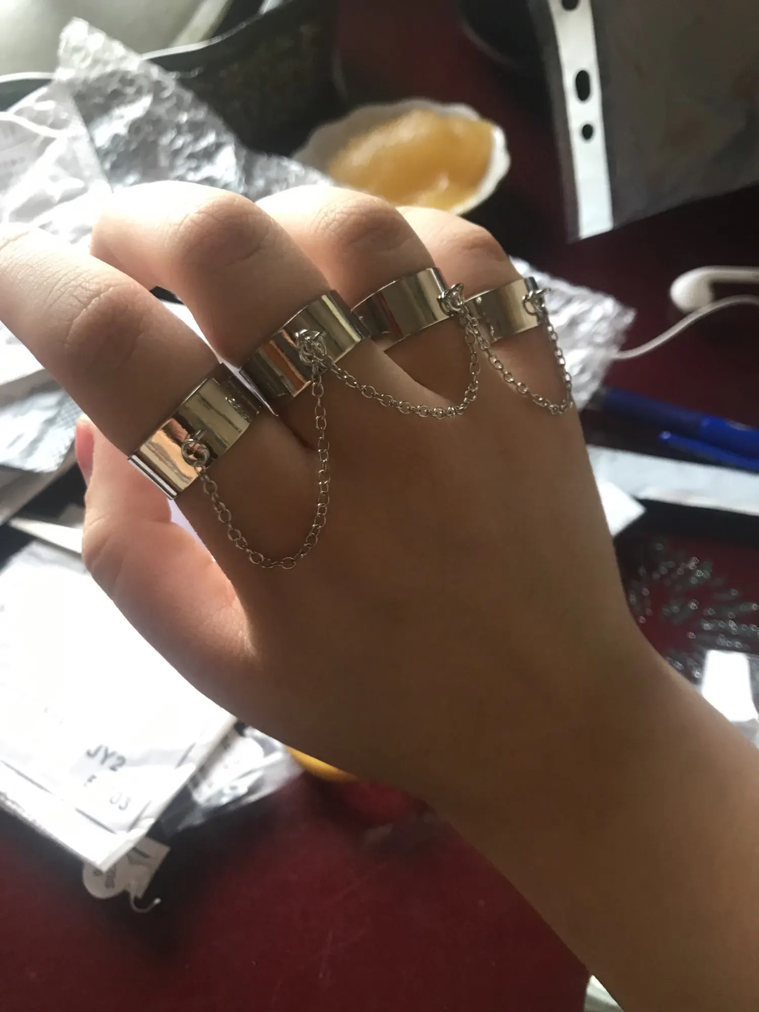 В стиле панк хип-хоп для кольца с многослойным покрытием Регулируемая цепь четыре открытые, кольца на палец сплава человек поворот кольца для Для женщин вечерние подарок