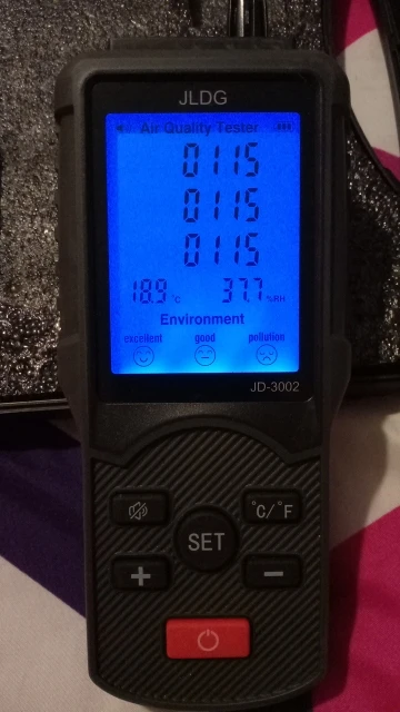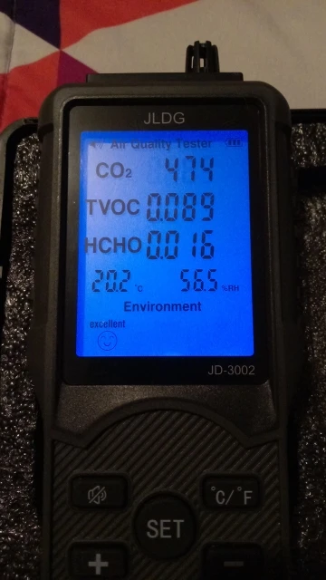Устройство, похоже, работает. Однако единицы измерения CO2, TVOC и HCOC не отображаются, в отличие от описания продукта. Поэтому пользователь не уверен в том, что на самом деле измерено. См. Прилагаемое изображение. Разочаровывает. Поэтому всего 3 звезды.