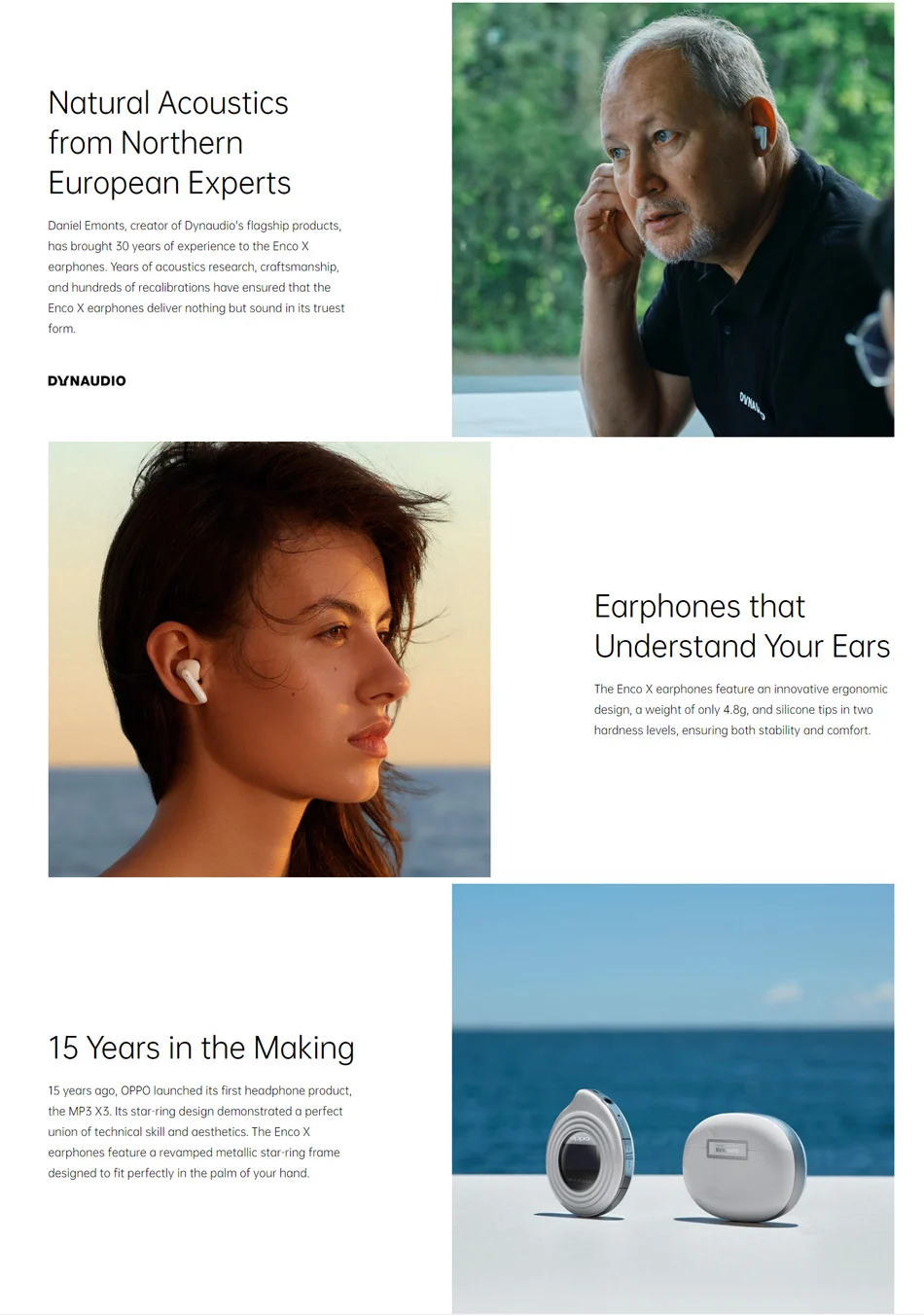 Передовые технологии и десятилетий в Северной Европе legacy объединяются в Enco X наушники, созданные OPPO и ведущим датским Hi-Fi бренд Dynaudio, которая была основана в 1977. Чтобы предоставить вам цифровое точное аудио, мы оценили 30 различных материалов и 152 компонентов и прошли 120 циклов структурного тонкой настройки в сотрудничестве с крупнейшей акустической лабораторией Dynaudio.