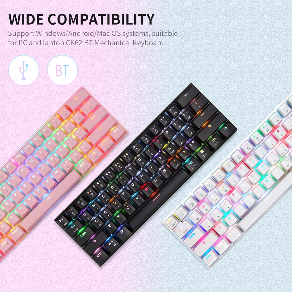 Механическая клавиатура Motospeed CK62, проводная игровая клавиатура с USB, BT, два режима, 61 клавиша, RGB клавиатура с переключателями OUTEMU синие красные