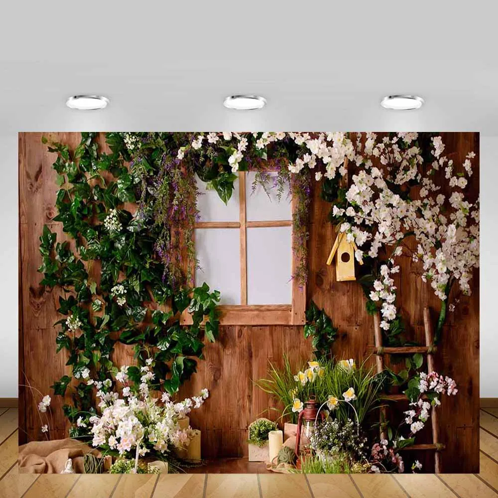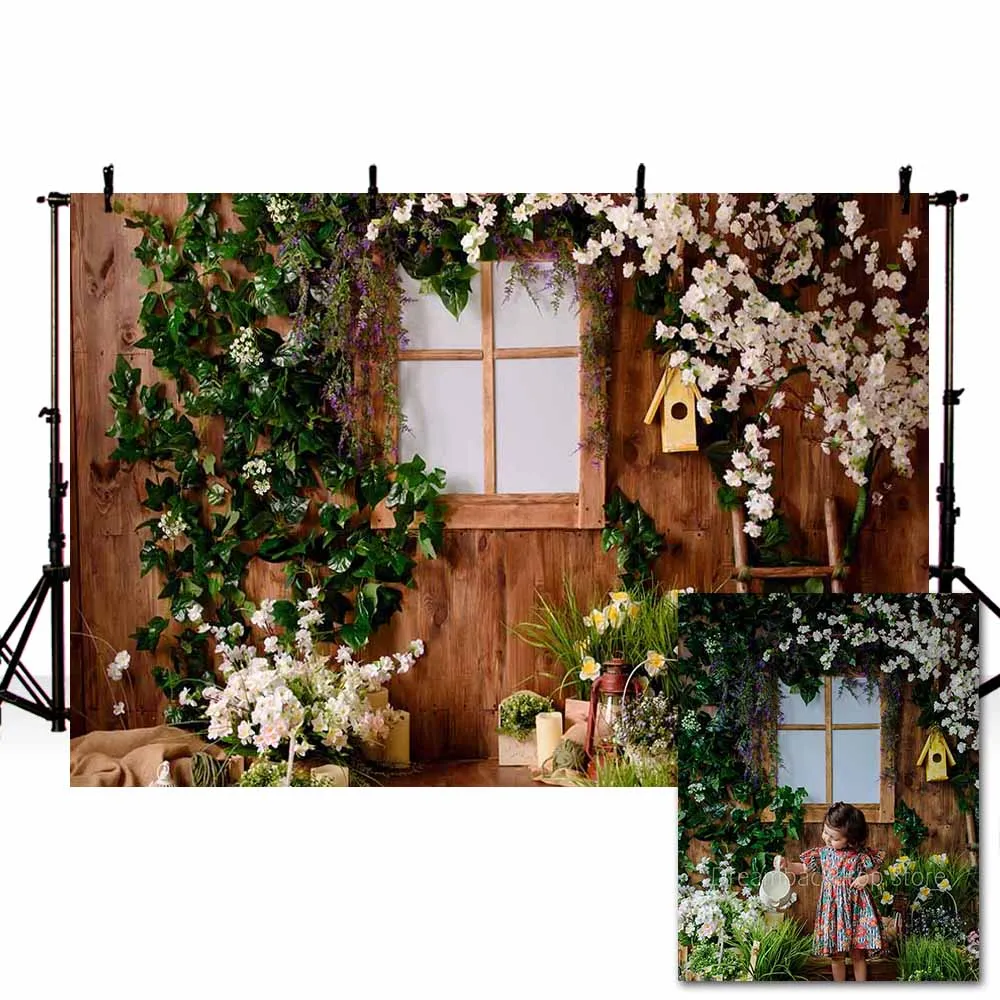 Пасхальный фон для фотографий Mehofond, Весенняя зеленая трава, деревянная стена, цветы, для новорожденных