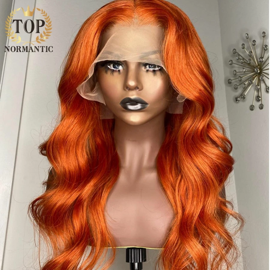 Topnormantic имбирь оранжево-Цвет 13x4 кружева передние парики с де...