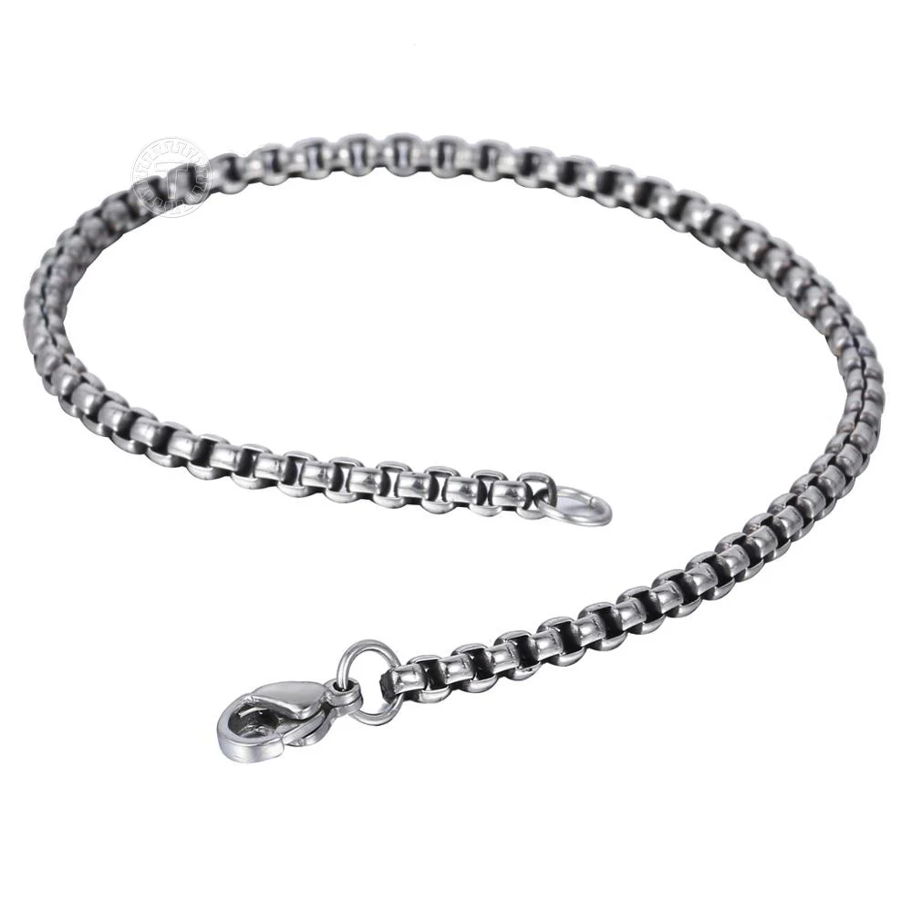 Звено цепи браслеты для мужчин и женщин серебряный цвет 3 мм Снаряженная кубинская Rolo кабель пшеничная круглая коробка браслет из нержавеющей стали LKB622