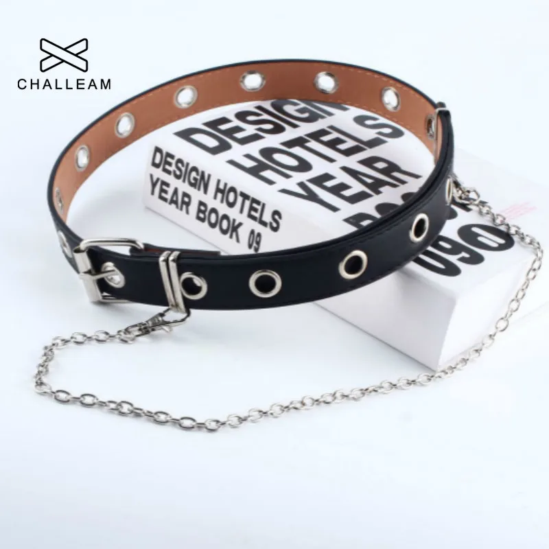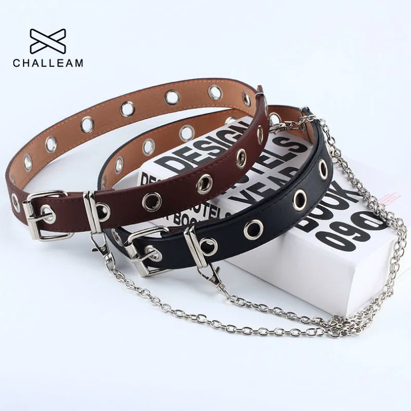 Ремень женский из искусственной кожи, с пряжкой со штырьком, в стиле панк, для джинсов, модный, черный, свободного размера, с люверсами для брюк, 152