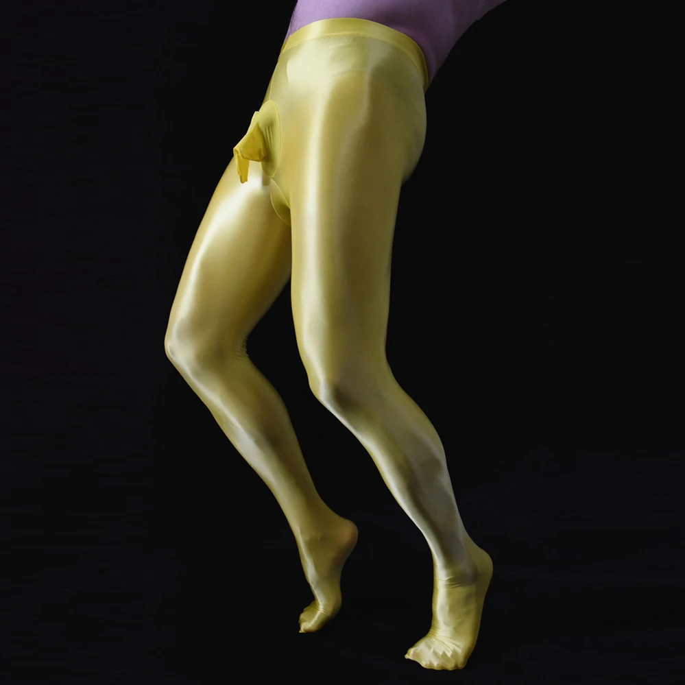 Пикантные блестящие мужские леггинсы, Чулки с U-образным выпуклым мешочком, рукавом для пениса, кальсоны, мужское нижнее белье, леггинсы, обтягивающие мужские колготки