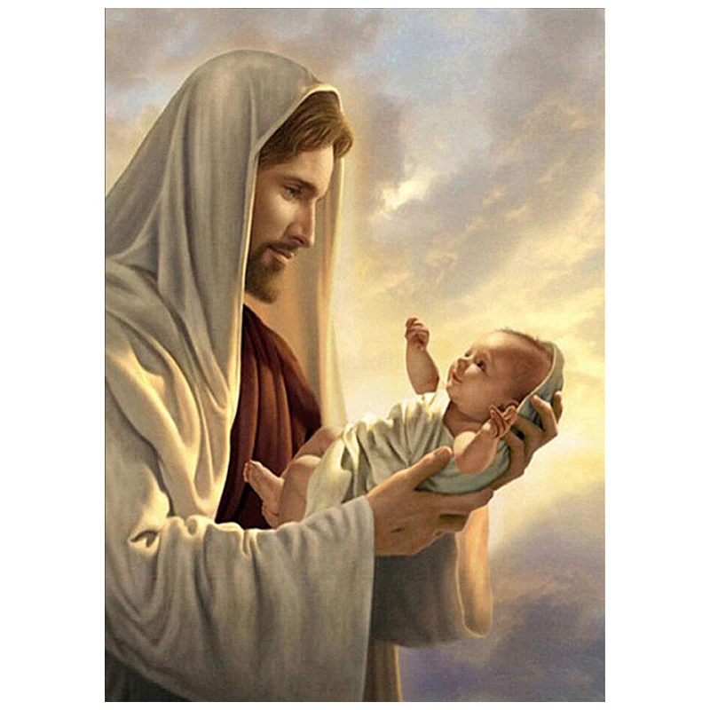Алмазная живопись Иисус с ребенком, мозаика для вышивки, религиозная полноформатная круглая стразы, картины для домашнего декора, подарок ручной работы