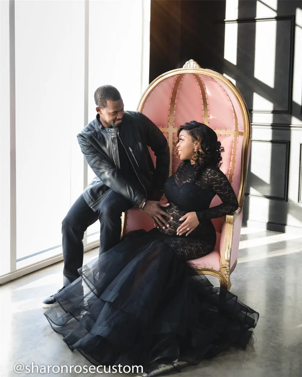 Платье макси для беременных Платья для фотосессии беременных женщин с длинным рукавом Черная кружевная Водолазка Платья для фотосессии платье для беременных