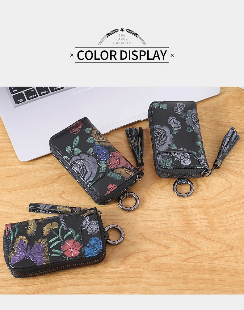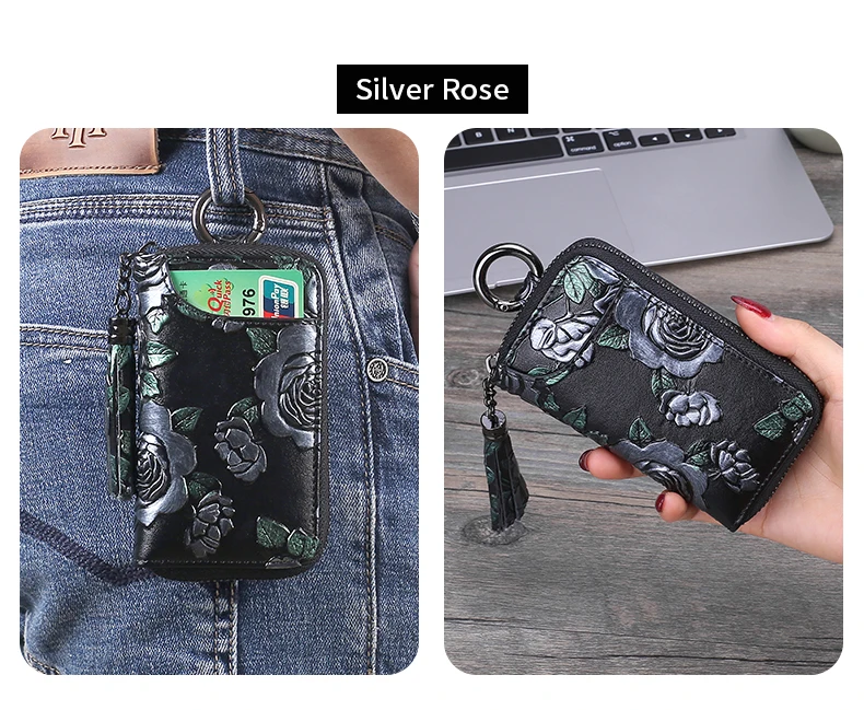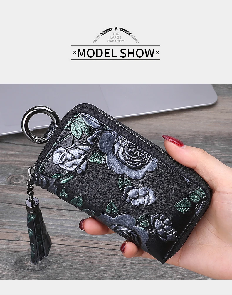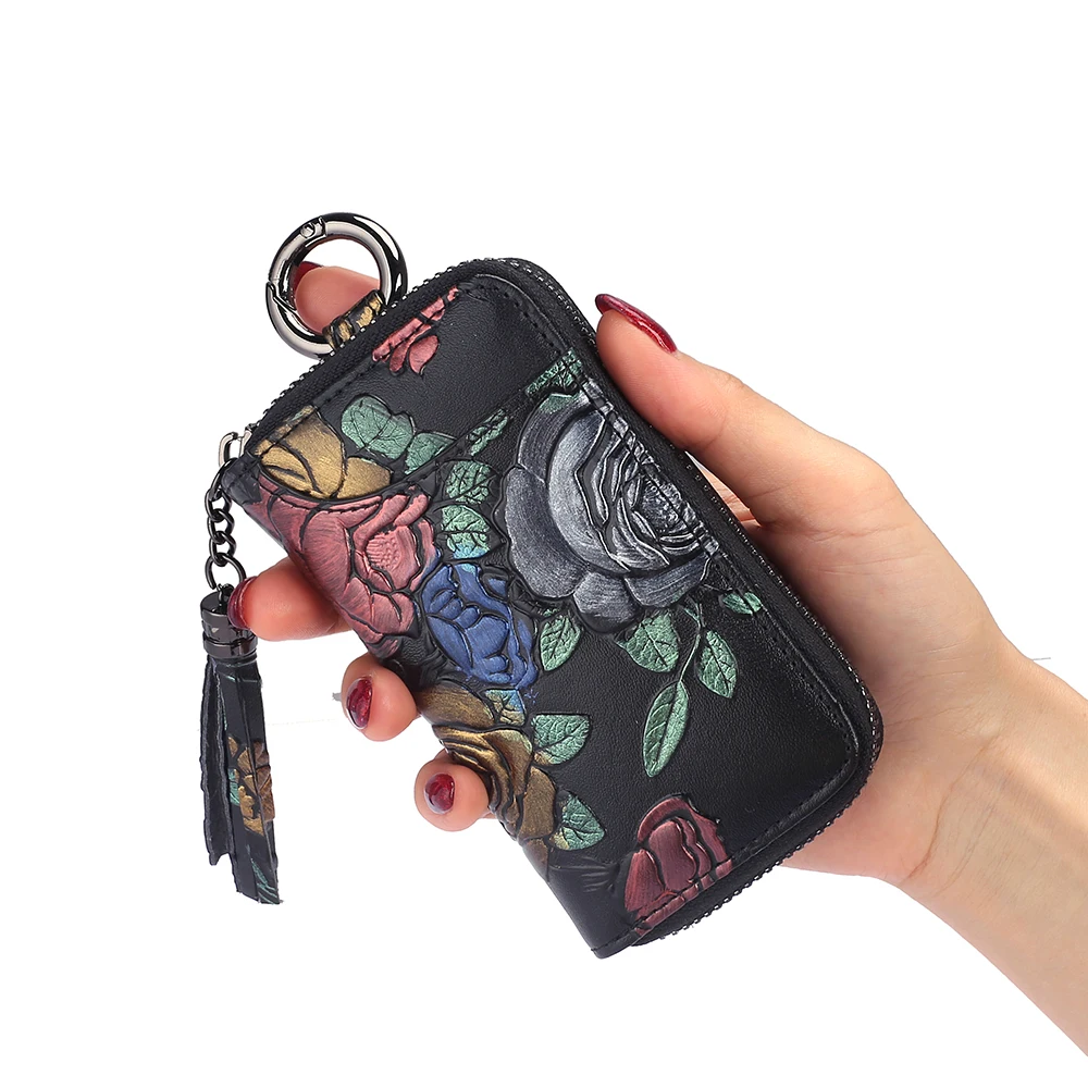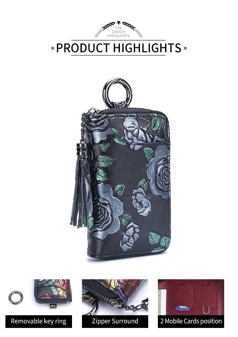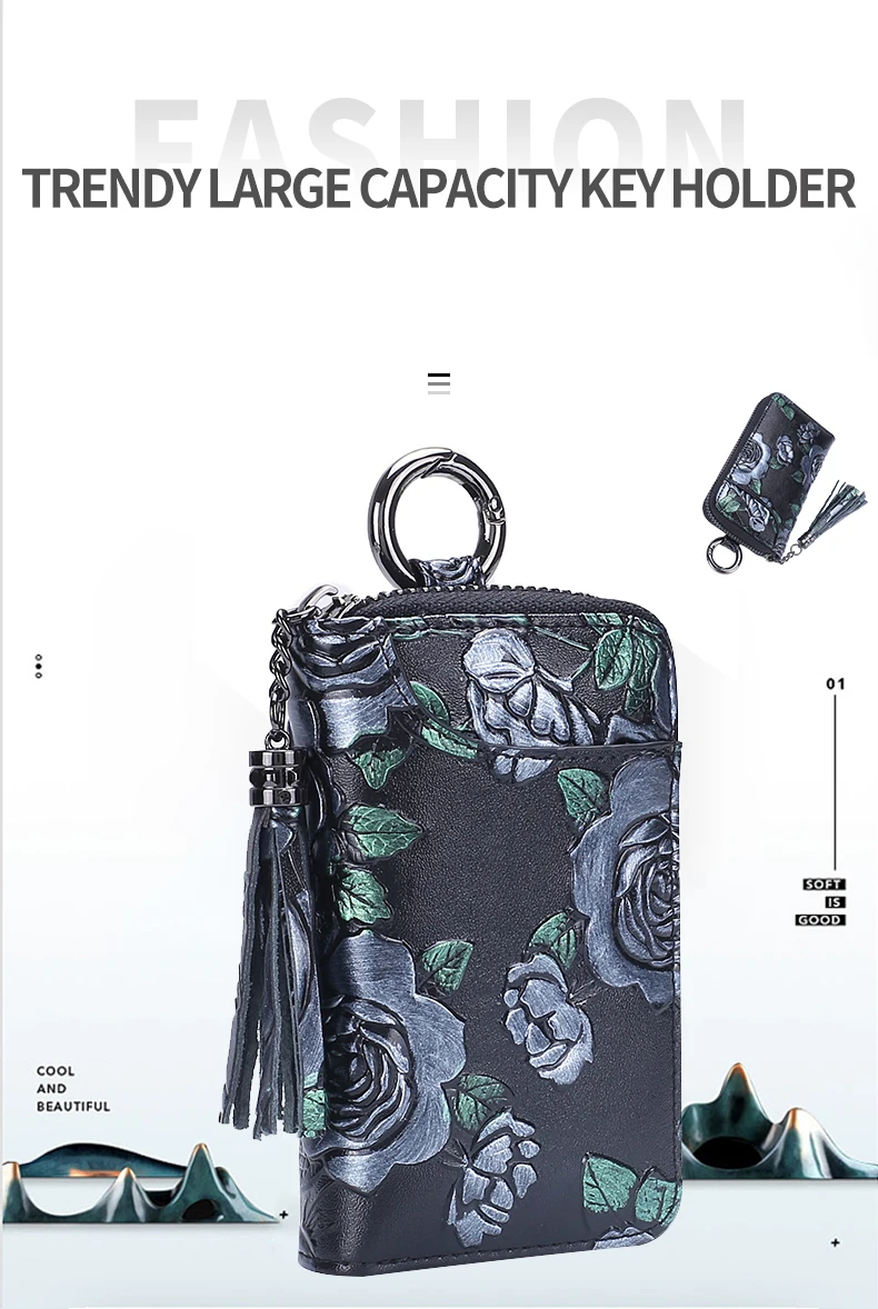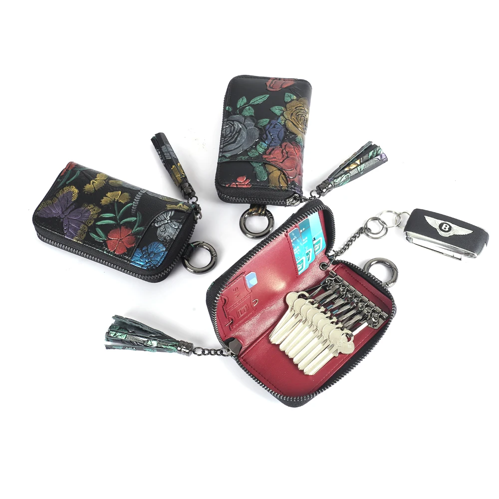 Модный брелок для ключей с принтом роз, кошельки для ключей из спилковой кожи, органайзер для ключей для мужчин и женщин, чехол для ключей