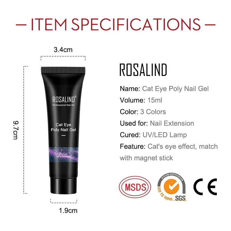 Полигель для наращивания ногтей ROSALIND, 15 мл30 мл, кошачий глаз, все для маникюра, полилаки, искусство ногтей полуперманентной формы