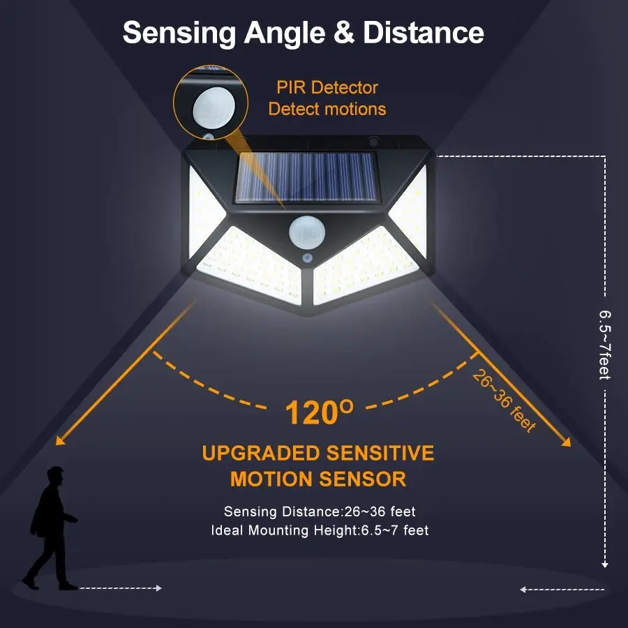 100 светодиодный солнечный светильник 3 режима движения PIR Сенсор стенная солнечна лампа на открытом воздухе Водонепроницаемый шланг для полива огорода, двора Безопасности Светильник s Прямая поставка
