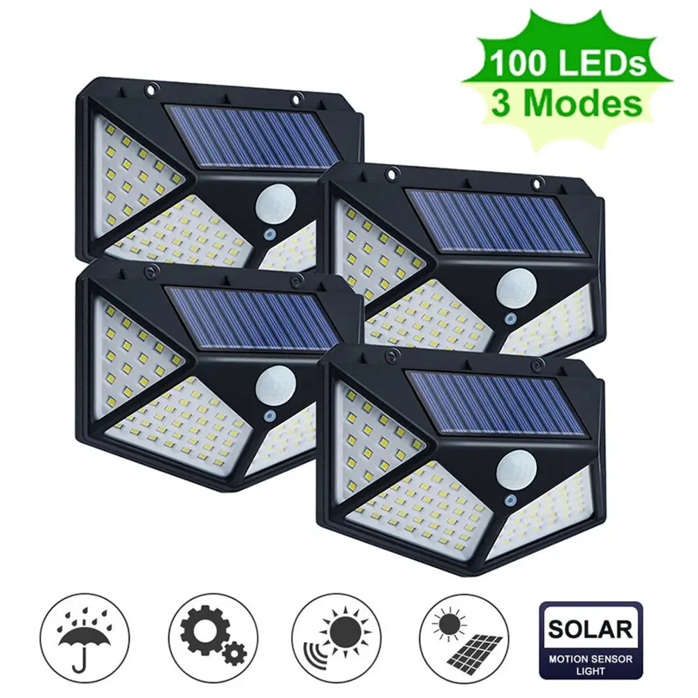 100 светодиодный светильник на солнечных батареях 3 режима PIR датчик движения Солнечная настенная лампа наружный водонепроницаемый садовый двор светильник безопасности s
